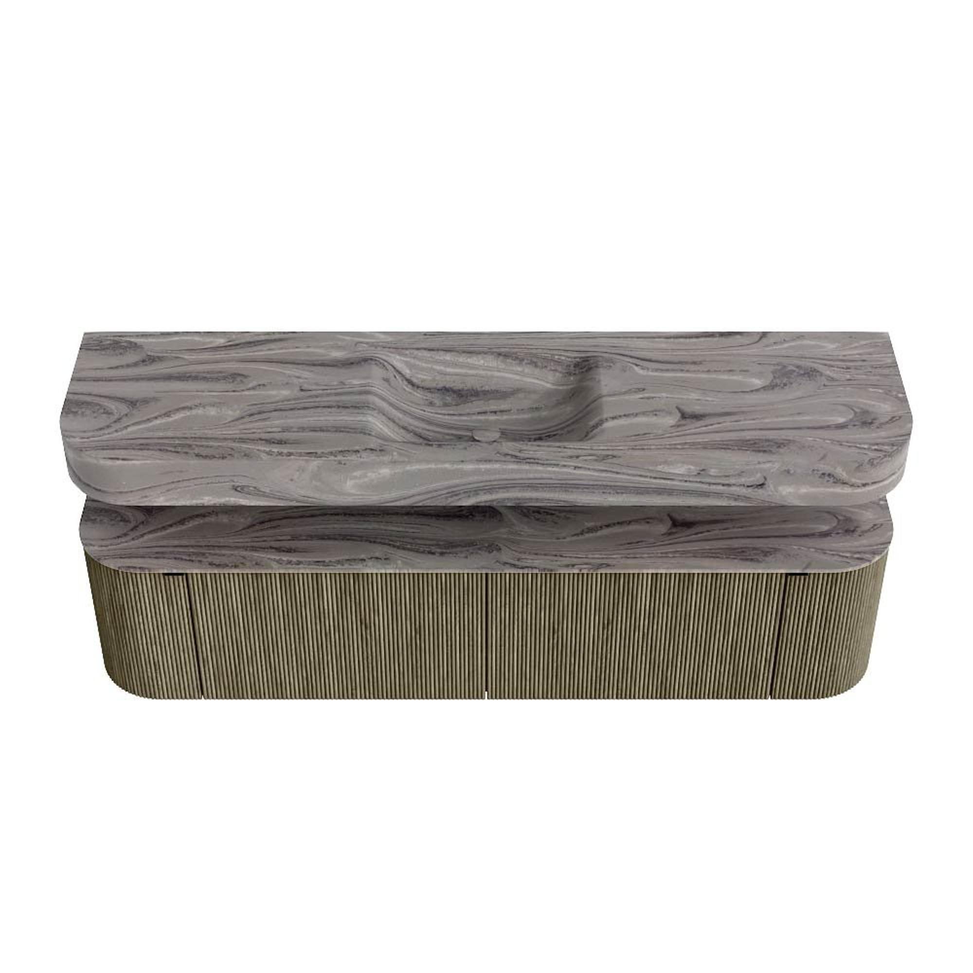 MONDIAZ THOR-DLUX 180cm badmeubel ronding links + rechts kleur Shadow met 2 lades en 2 deuren. Vrijhangende wastafel CLOUD Midden zonder kraangat kleur Sombra.