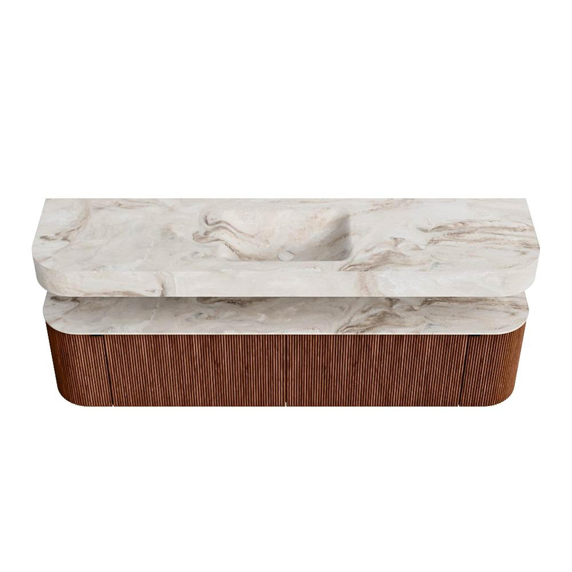 MONDIAZ THOR-DLUX 190cm badmeubel ronding links + rechts kleur Ruby met 2 lades en 2 deuren. Vrijhangende wastafel CLOUD Midden zonder kraangat kleur Frappe.