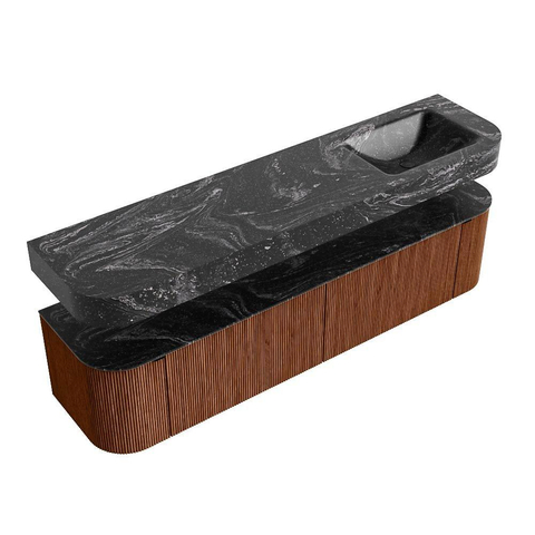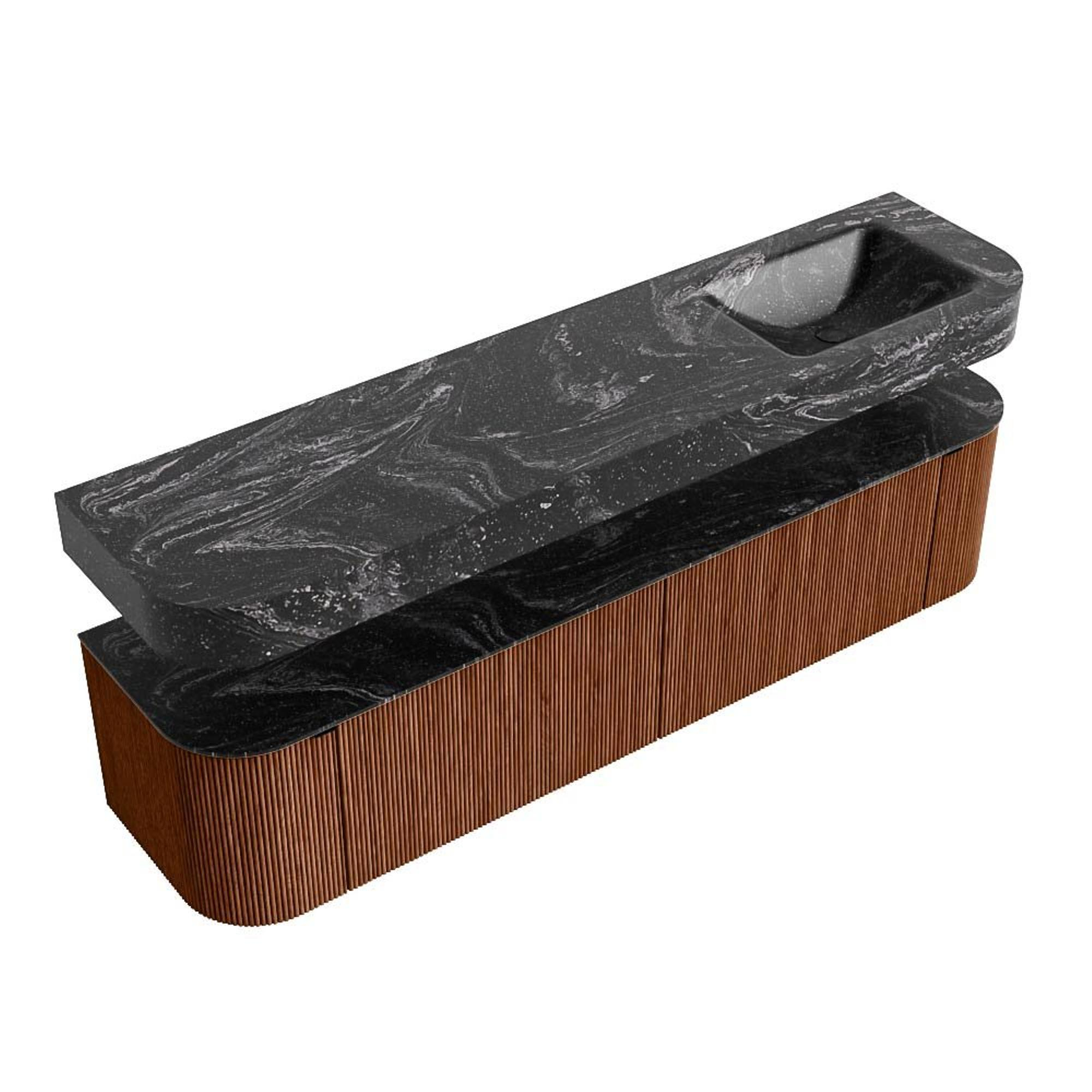 MONDIAZ THOR-DLUX 190cm badmeubel ronding links + rechts kleur Ruby met 2 lades en 2 deuren. Vrijhangende wastafel CLOUD Rechts 1 kraangat kleur Lava.
