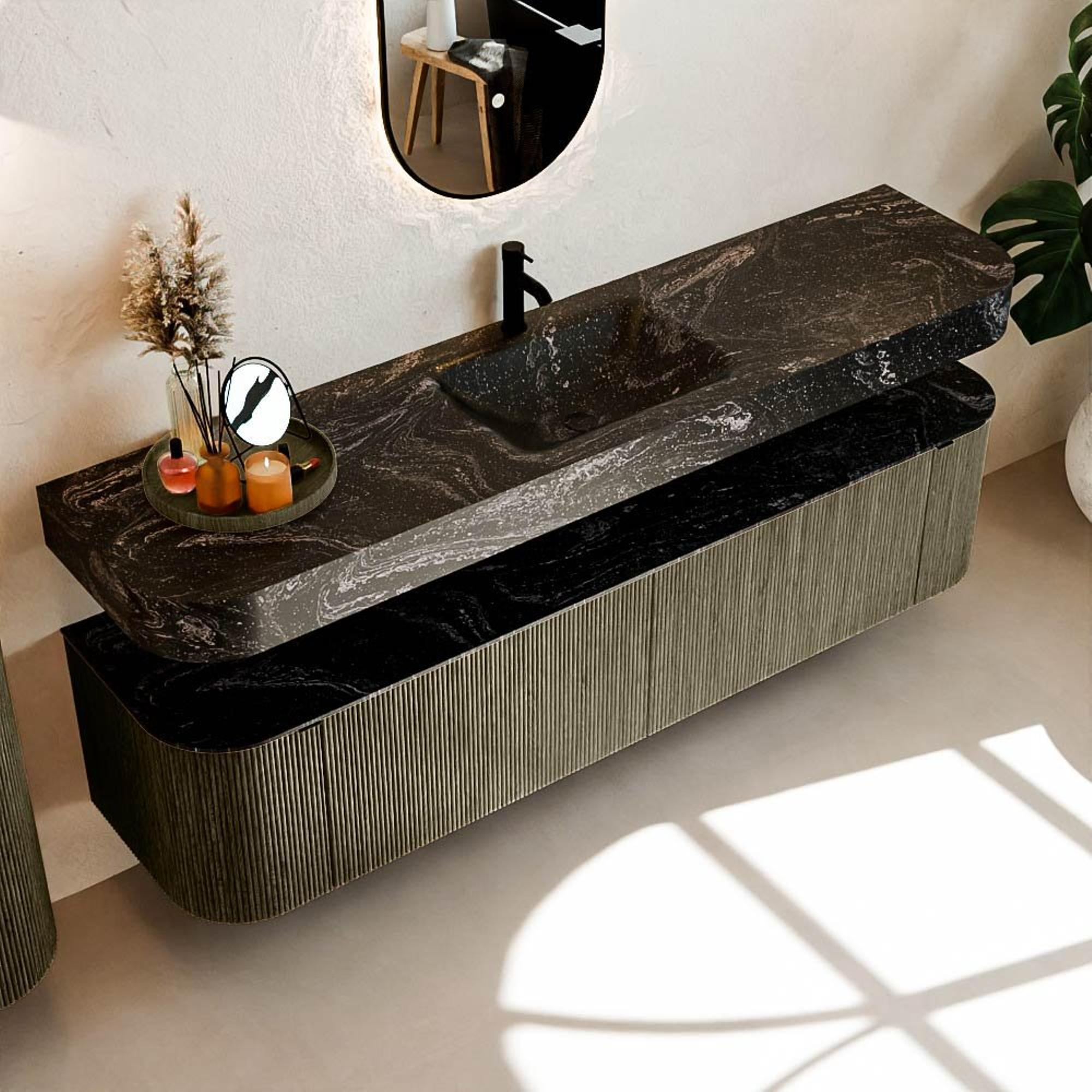 MONDIAZ THOR-DLUX 190cm badmeubel ronding links + rechts kleur Shadow met 2 lades en 2 deuren. Vrijhangende wastafel CLOUD Midden 1 kraangat kleur Lava.