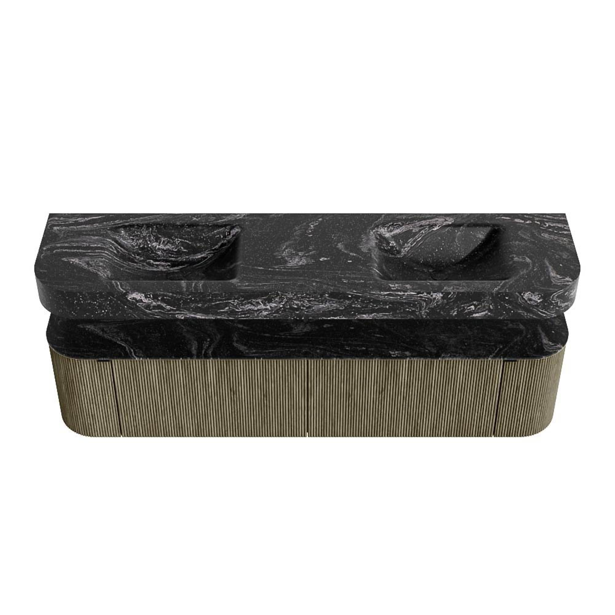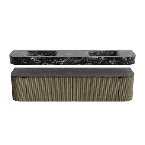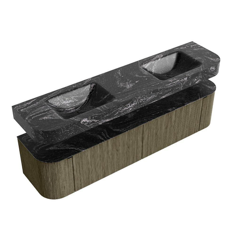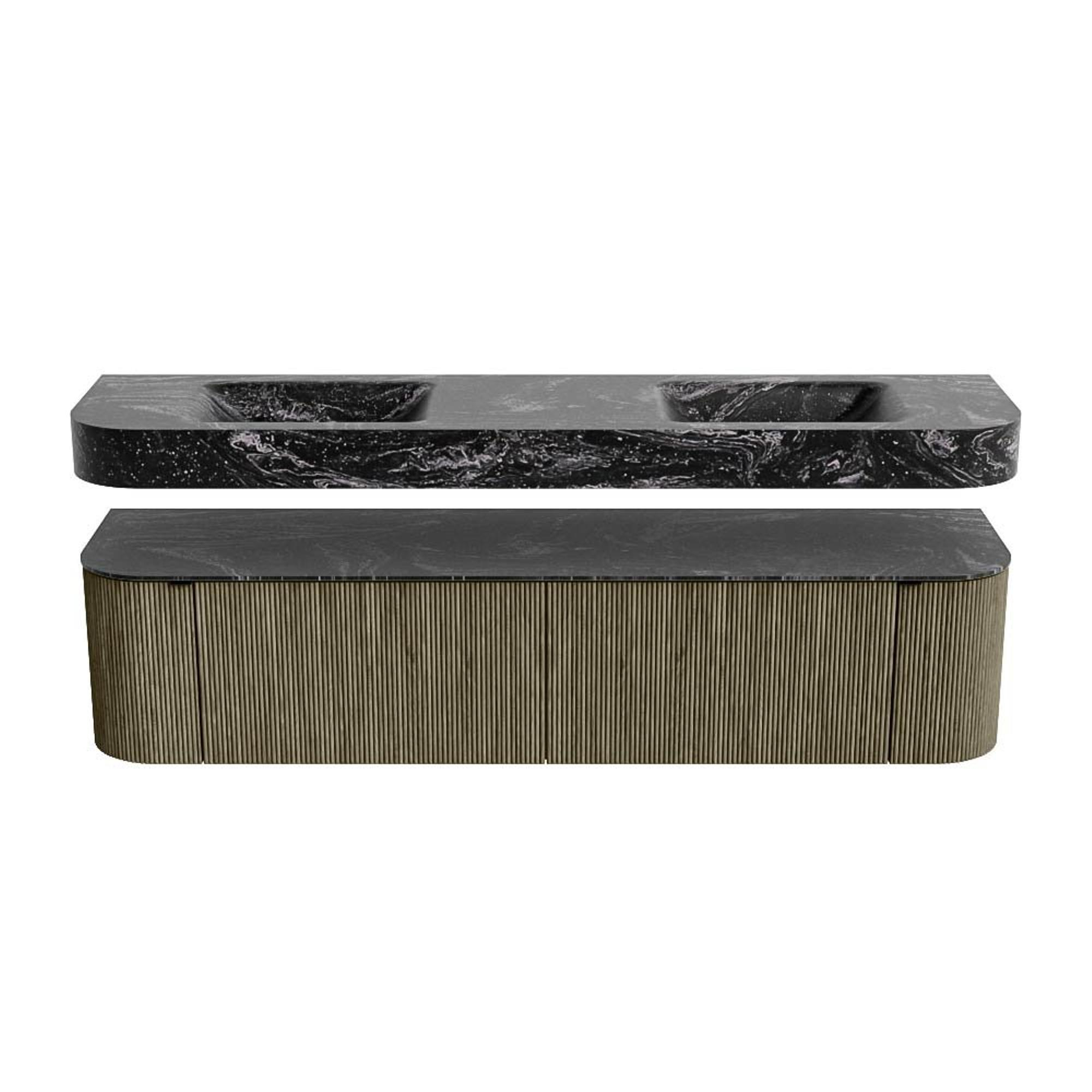 MONDIAZ THOR-DLUX 190cm badmeubel ronding links + rechts kleur Shadow met 2 lades en 2 deuren. Vrijhangende wastafel CLOUD Dubbel zonder kraangat kleur Lava.