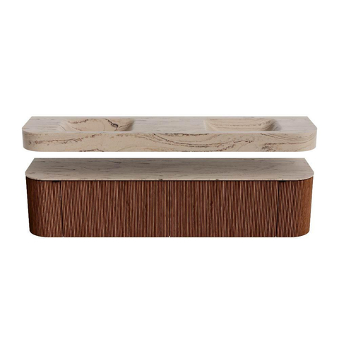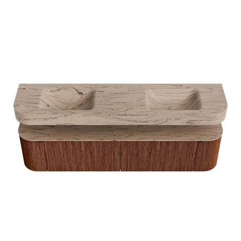 Natuurlijke materialen in warme tinten. De verticale ribbels brengen ritme en textuur in het ontwerp, terwijl het eikenhout zorgt voor een warme, ambachtelijke uitstraling. Kies uit 5 houttinten OAK, WALNUT, DUSK, SHADOW en RUBY zorgvuldig geselecteerde houtkleuren om zowel moderne als klassieke badkamers te verrijken.