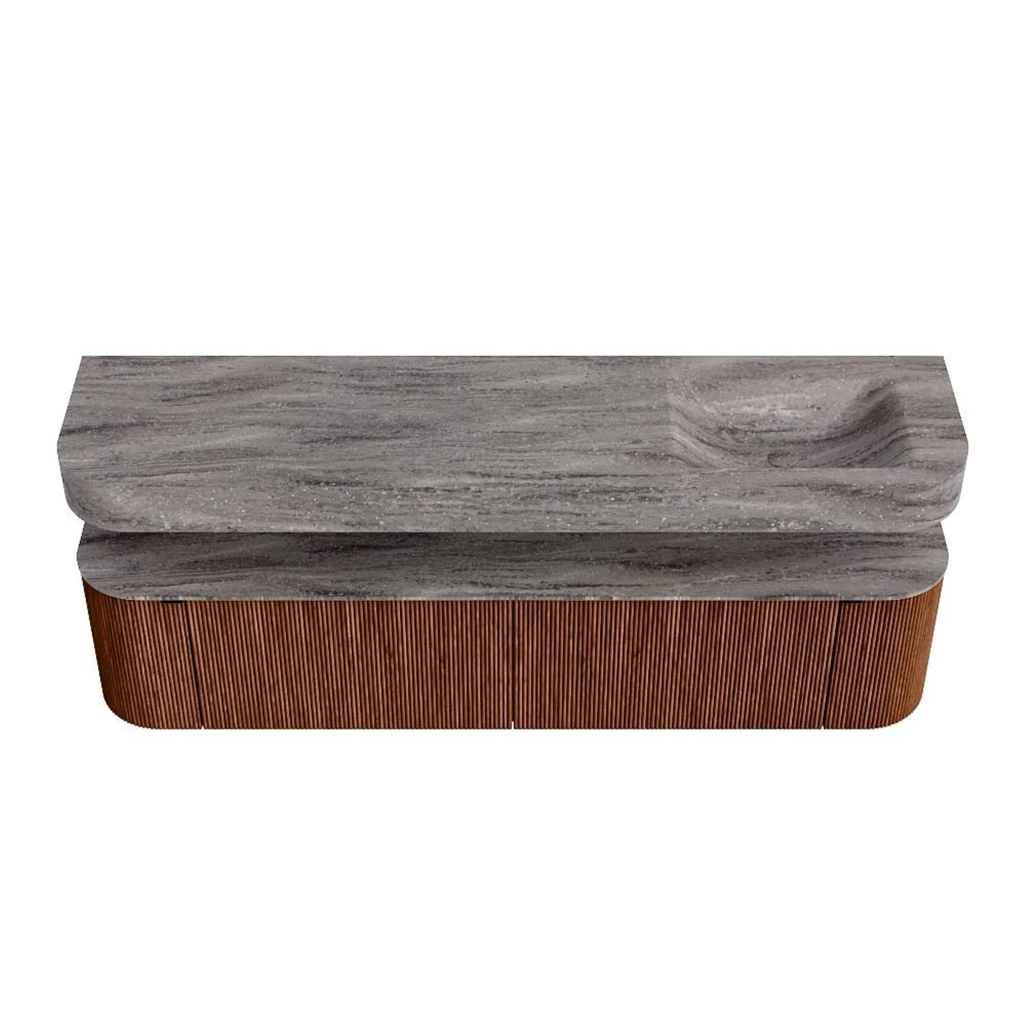 MONDIAZ THOR-DLUX 190cm badmeubel ronding links + rechts kleur Ruby met 2 lades en 2 deuren. Vrijhangende wastafel CLOUD Rechts 1 kraangat kleur Oza.