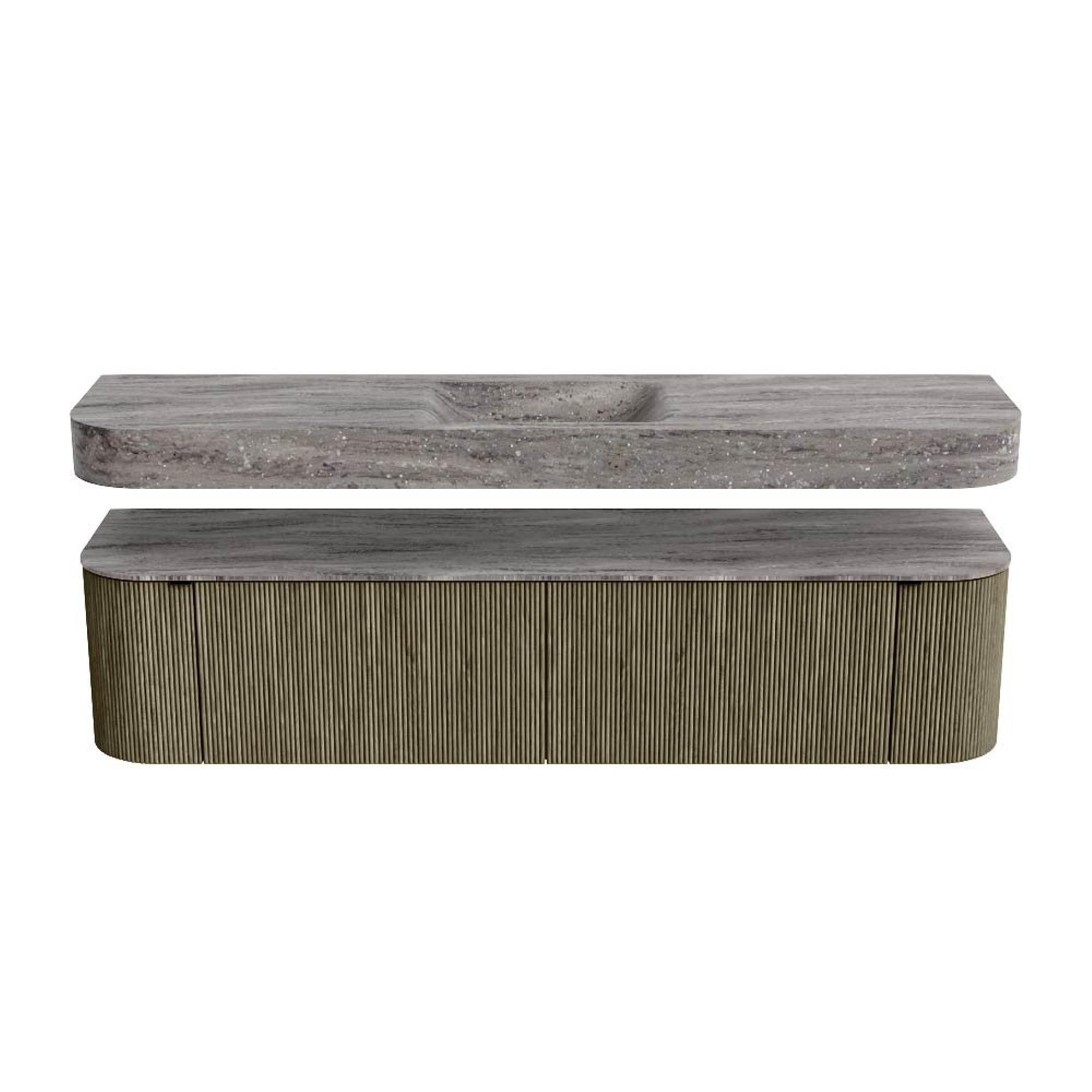 MONDIAZ THOR-DLUX 190cm badmeubel ronding links + rechts kleur Shadow met 2 lades en 2 deuren. Vrijhangende wastafel CLOUD Midden zonder kraangat kleur Oza.