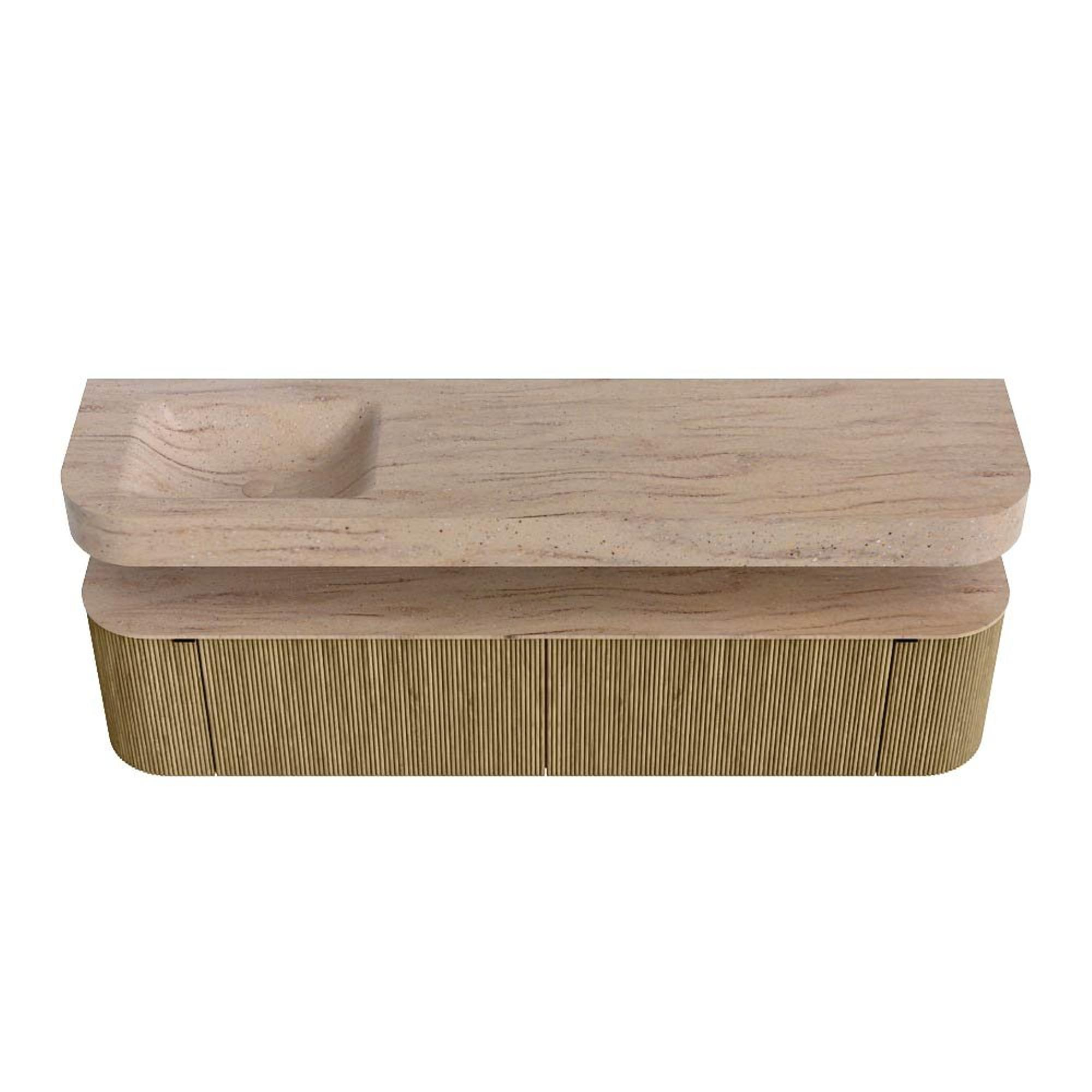 MONDIAZ THOR-DLUX 190cm badmeubel ronding links + rechts kleur Dusk met 2 lades en 2 deuren. Vrijhangende wastafel CLOUD Links 1 kraangat kleur Saba.
