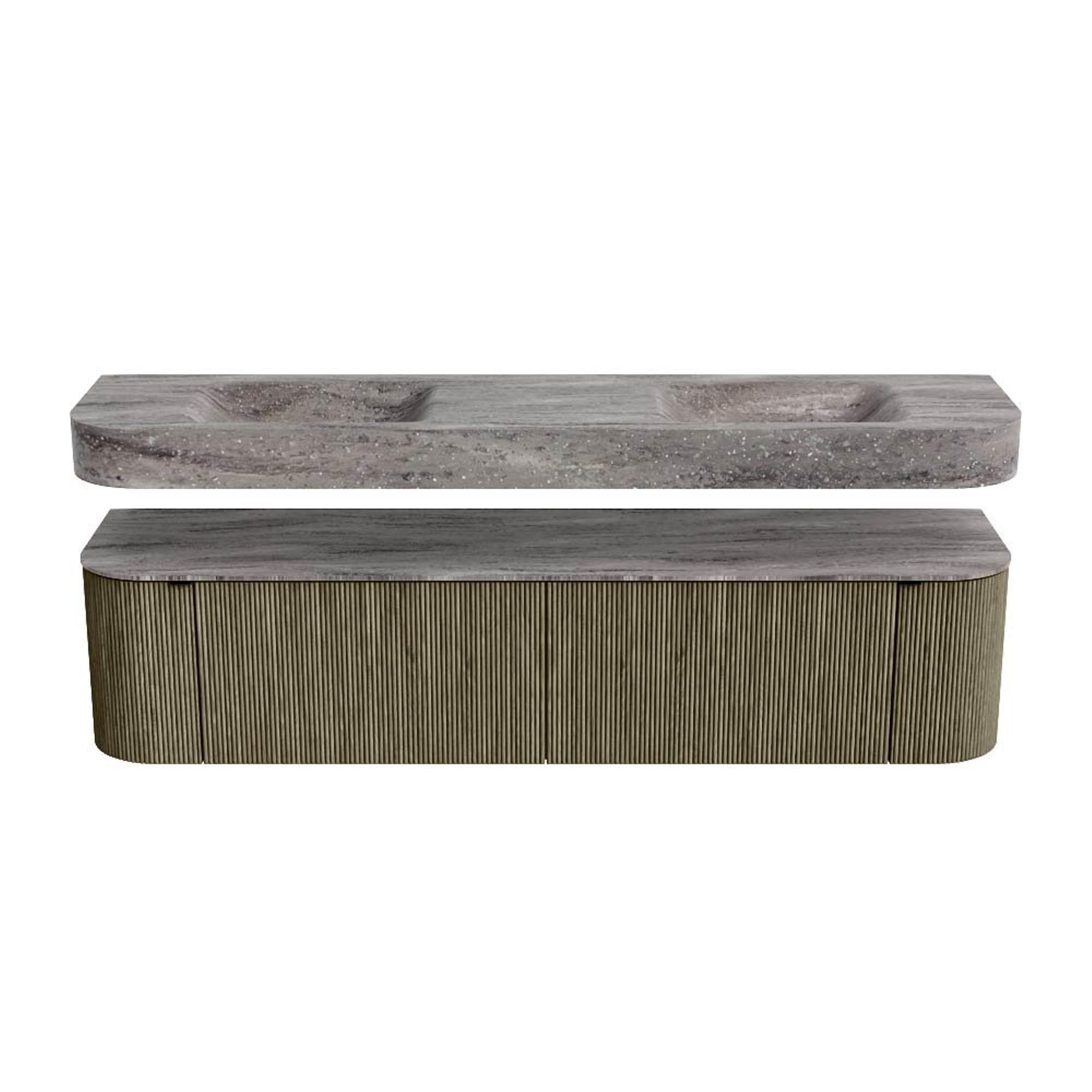 MONDIAZ THOR-DLUX 190cm badmeubel ronding links + rechts kleur Shadow met 2 lades en 2 deuren. Vrijhangende wastafel CLOUD Dubbel 2 kraangaten kleur Oza.