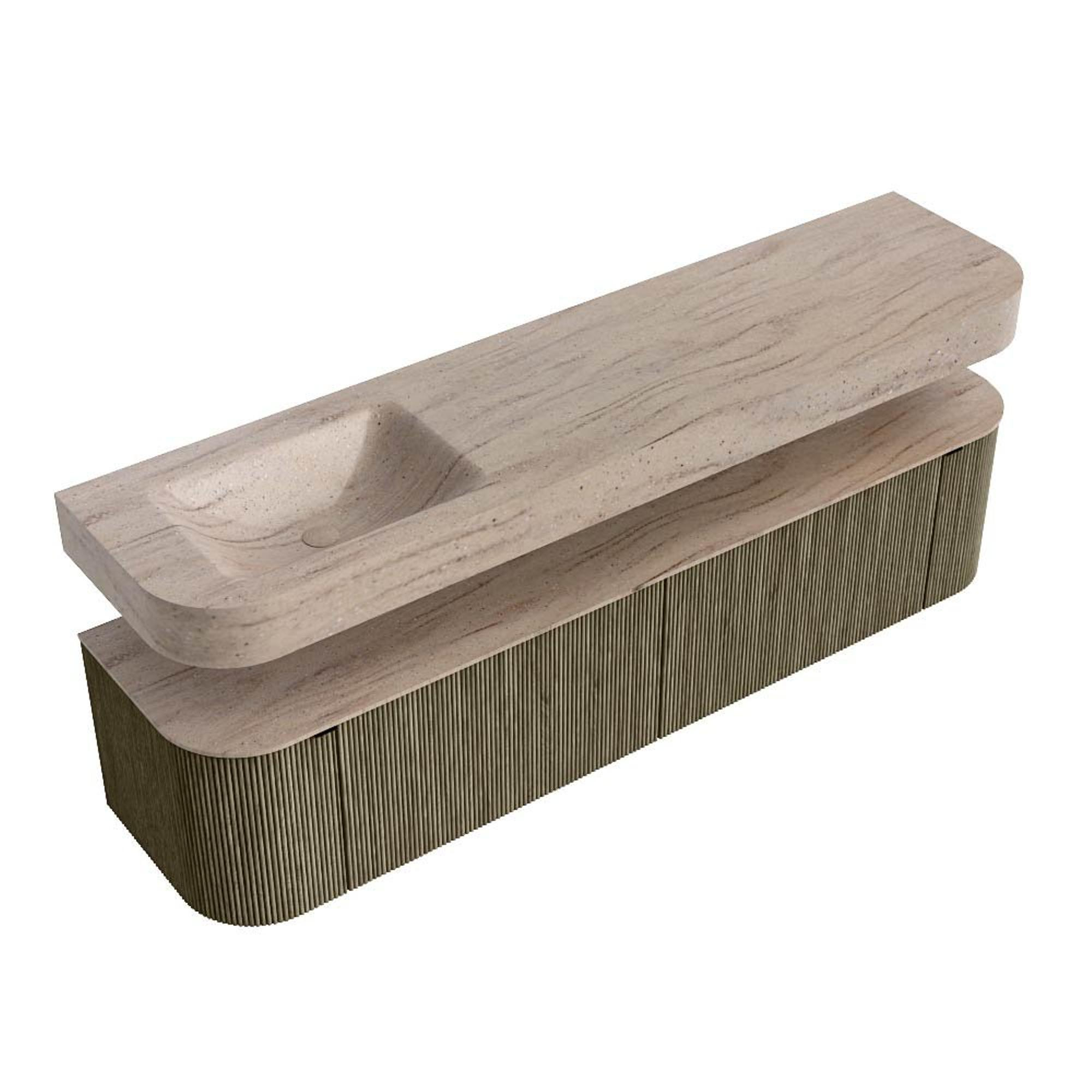 MONDIAZ THOR-DLUX 190cm badmeubel ronding links + rechts kleur Shadow met 2 lades en 2 deuren. Vrijhangende wastafel CLOUD Links 1 kraangat kleur Saba.