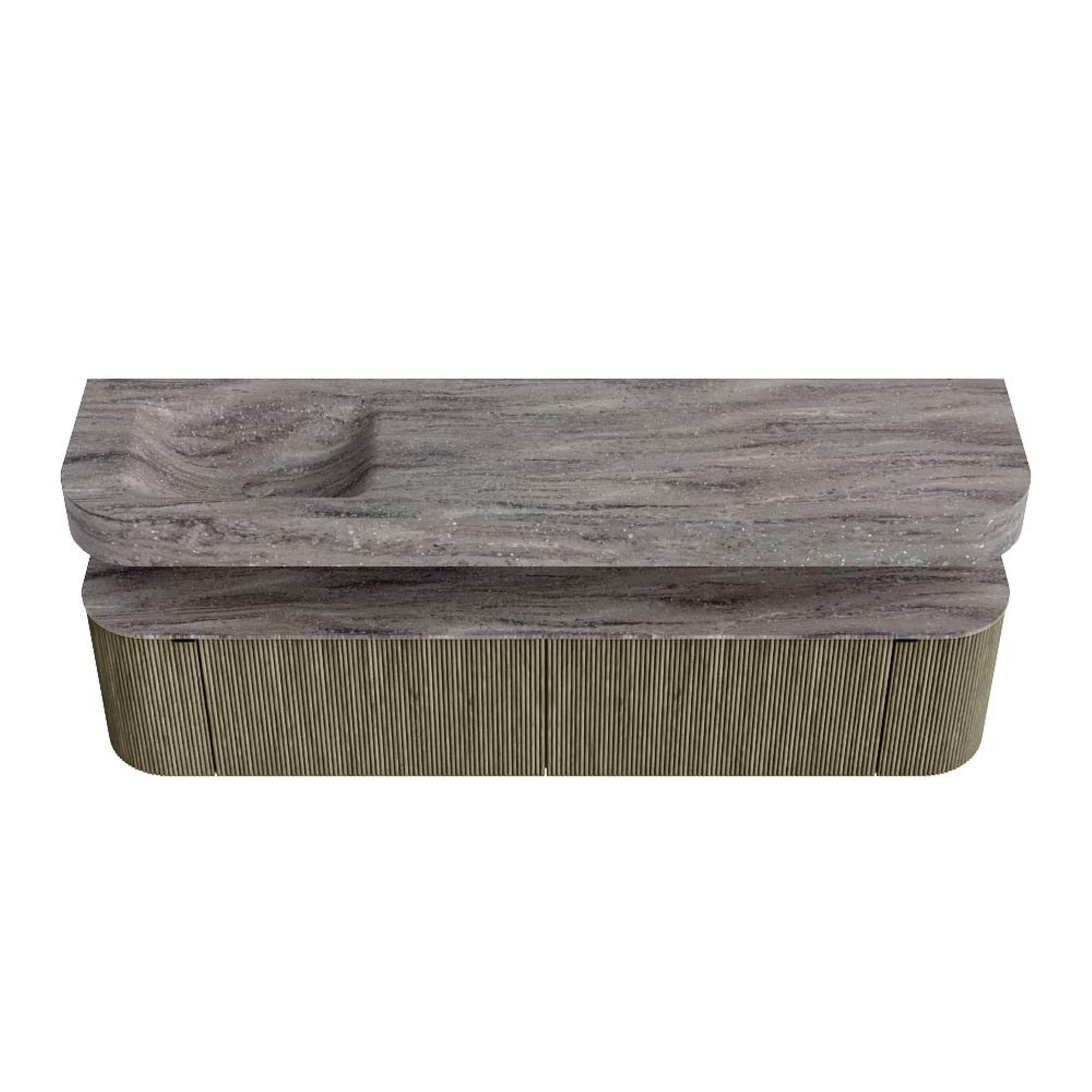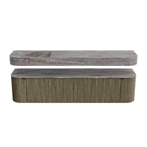 MONDIAZ THOR-DLUX 190cm badmeubel ronding links + rechts kleur Shadow met 2 lades en 2 deuren. Vrijhangende wastafel CLOUD Links zonder kraangat kleur Oza.
