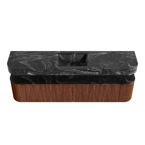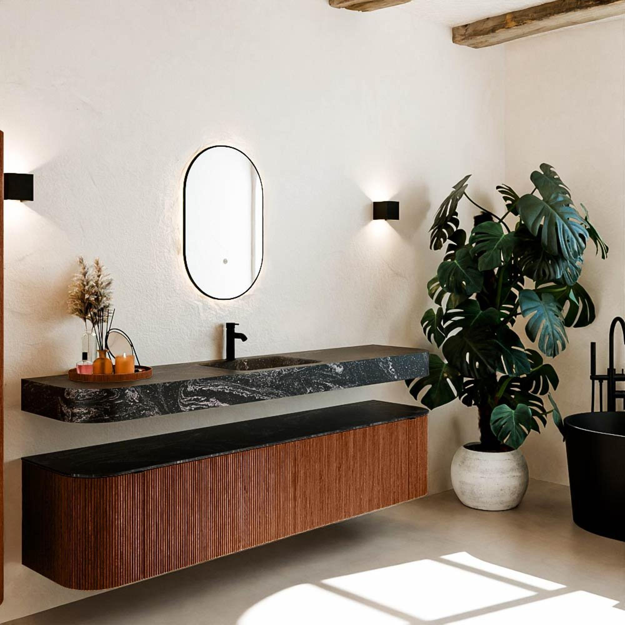 Natuurlijke materialen in warme tinten. De verticale ribbels brengen ritme en textuur in het ontwerp, terwijl het eikenhout zorgt voor een warme, ambachtelijke uitstraling. Kies uit 5 houttinten OAK, WALNUT, DUSK, SHADOW en RUBY zorgvuldig geselecteerde houtkleuren om zowel moderne als klassieke badkamers te verrijken.