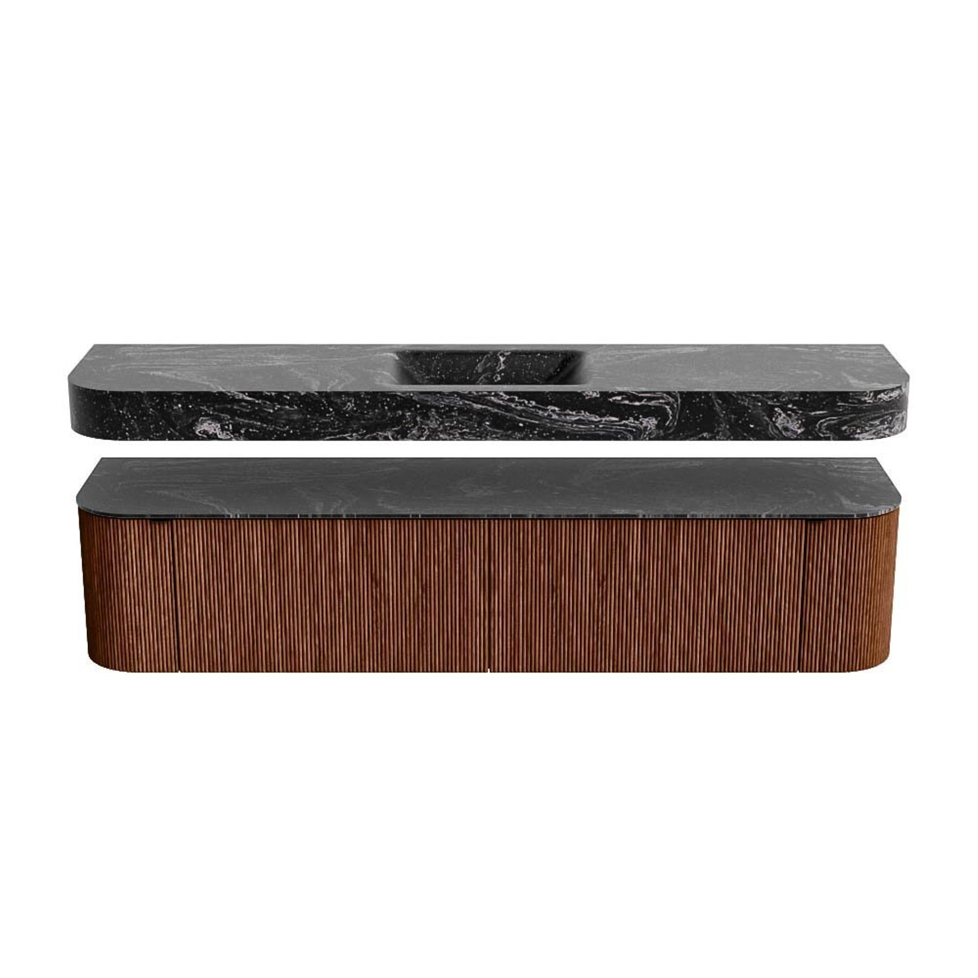 MONDIAZ THOR-DLUX 200cm badmeubel ronding links + rechts kleur Ruby met 2 lades en 2 deuren. Vrijhangende wastafel CLOUD Midden 1 kraangat kleur Lava.