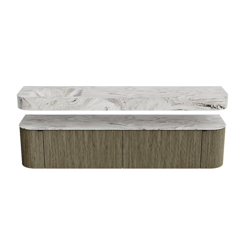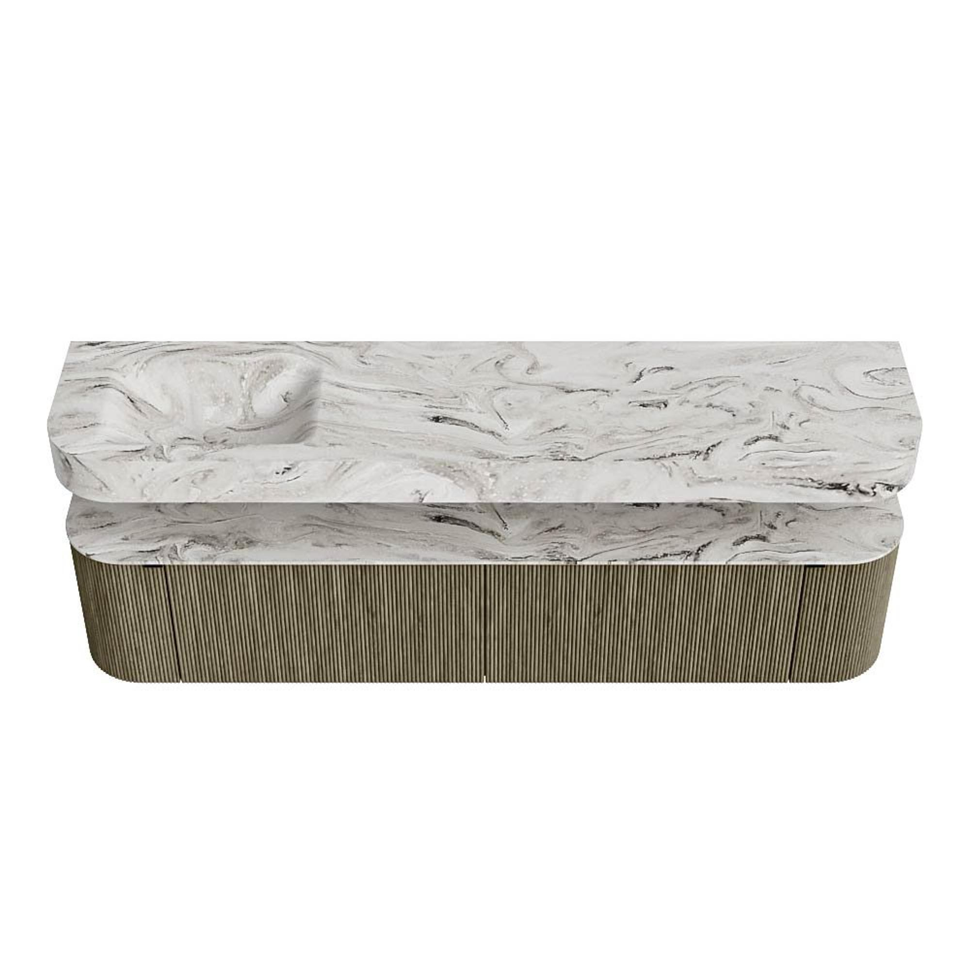 MONDIAZ THOR-DLUX 200cm badmeubel ronding links + rechts kleur Shadow met 2 lades en 2 deuren. Vrijhangende wastafel CLOUD Links 1 kraangat kleur Glace.