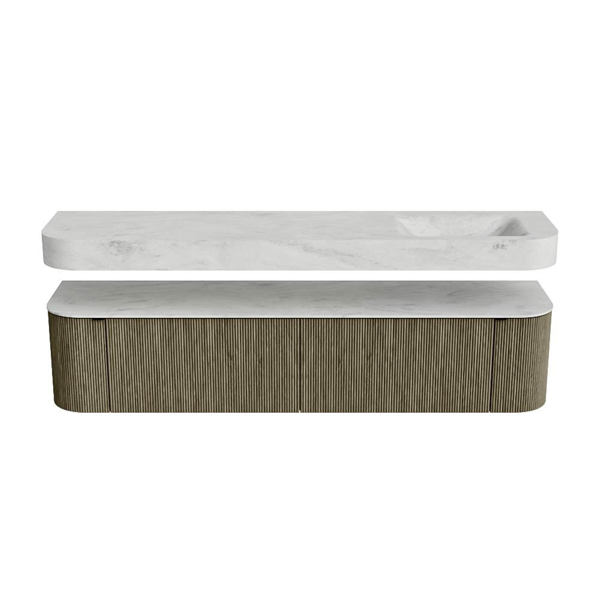 MONDIAZ THOR-DLUX 200cm badmeubel ronding links + rechts kleur Shadow met 2 lades en 2 deuren. Vrijhangende wastafel CLOUD Rechts 1 kraangat kleur Opalo.