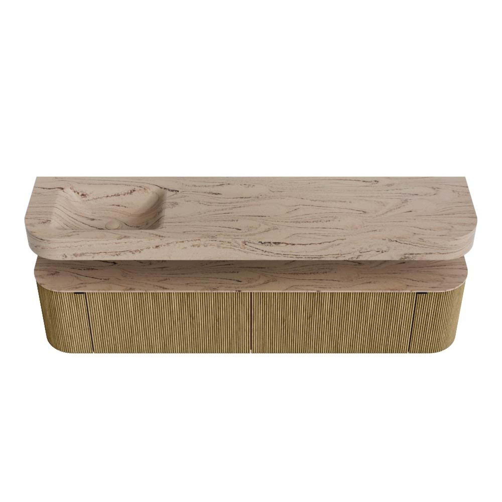 MONDIAZ THOR-DLUX 200cm badmeubel ronding links + rechts kleur Dusk met 2 lades en 2 deuren. Vrijhangende wastafel CLOUD Links 1 kraangat kleur Arena.