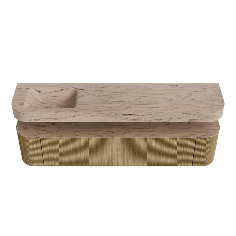 Ontdek THOR, een meubel dat architectuur en ambacht samenbrengt. Deze exclusieve serie THOR kenmerkt zich door haar verticale ribbelstructuur, uitgevoerd in massief eikenhout en eiken fineer. De vormgeving is strak en vloeiend tegelijk, met afgeronde contouren die elegantie en zachtheid uitstralen.