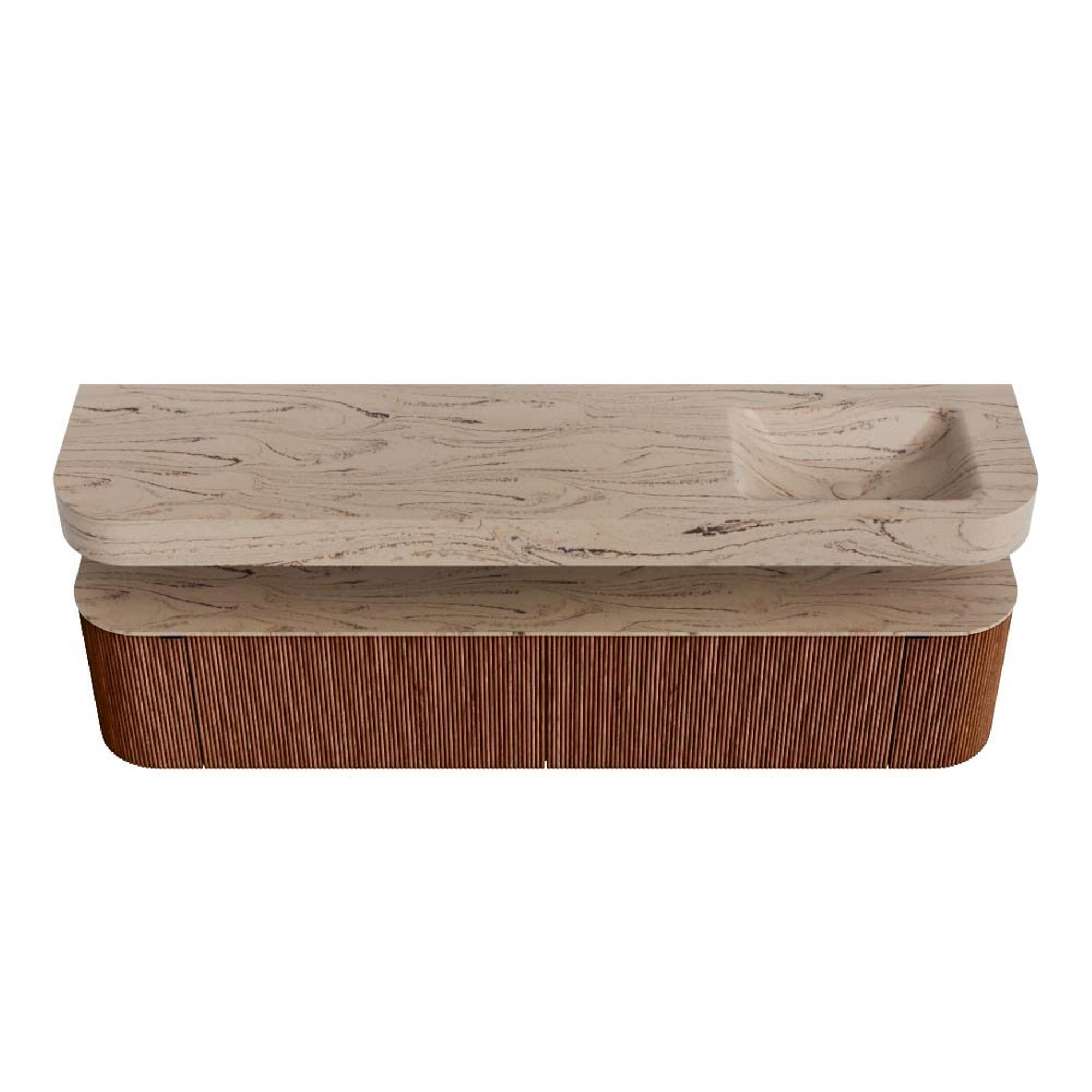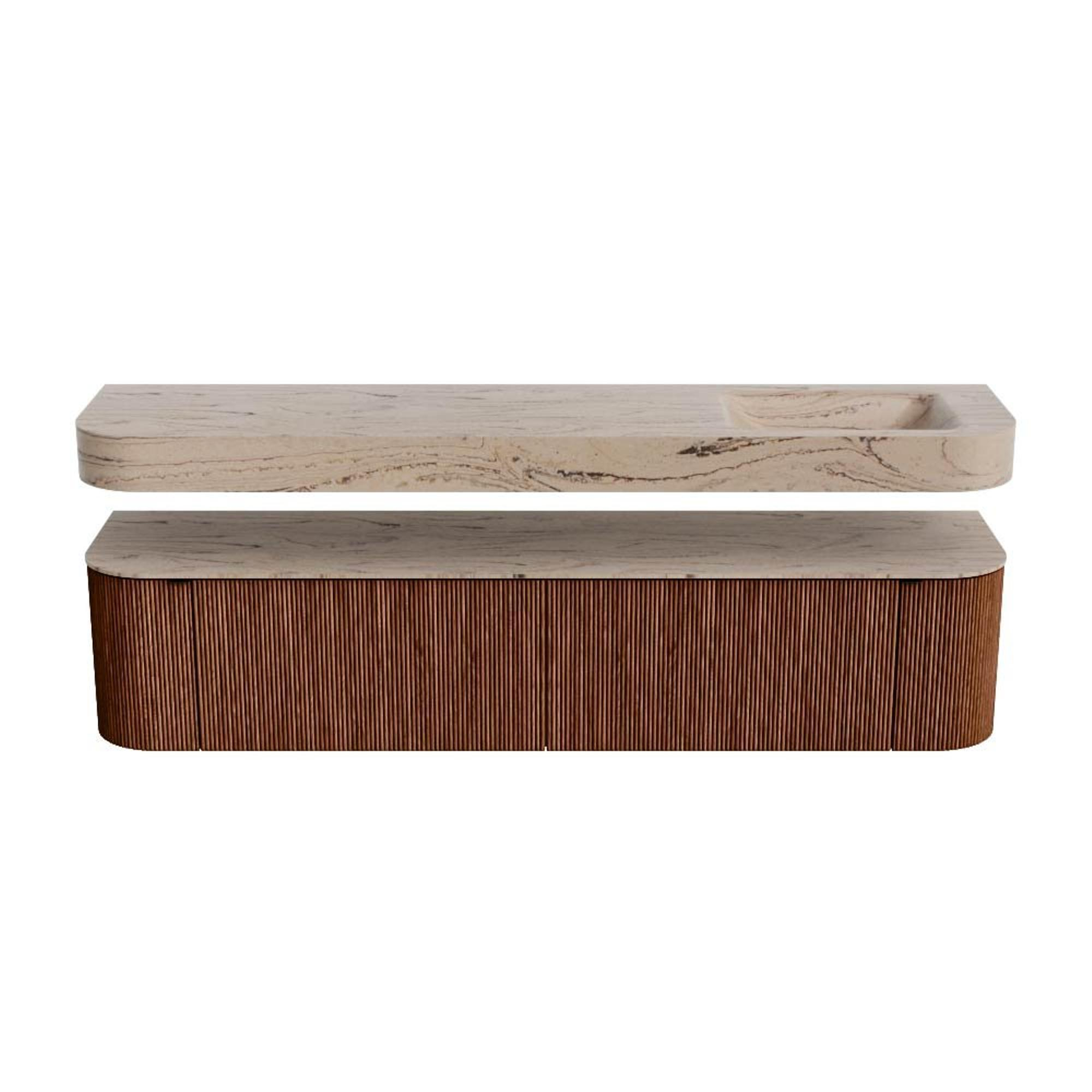 MONDIAZ THOR-DLUX 200cm badmeubel ronding links + rechts kleur Ruby met 2 lades en 2 deuren. Vrijhangende wastafel CLOUD Rechts 1 kraangat kleur Arena.