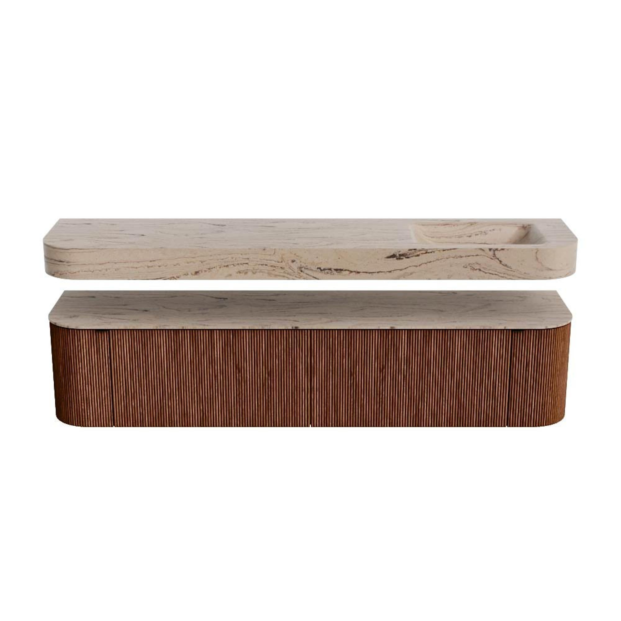 MONDIAZ THOR-DLUX 200cm badmeubel ronding links + rechts kleur Ruby met 2 lades en 2 deuren. Vrijhangende wastafel CLOUD Rechts zonder kraangat kleur Arena.
