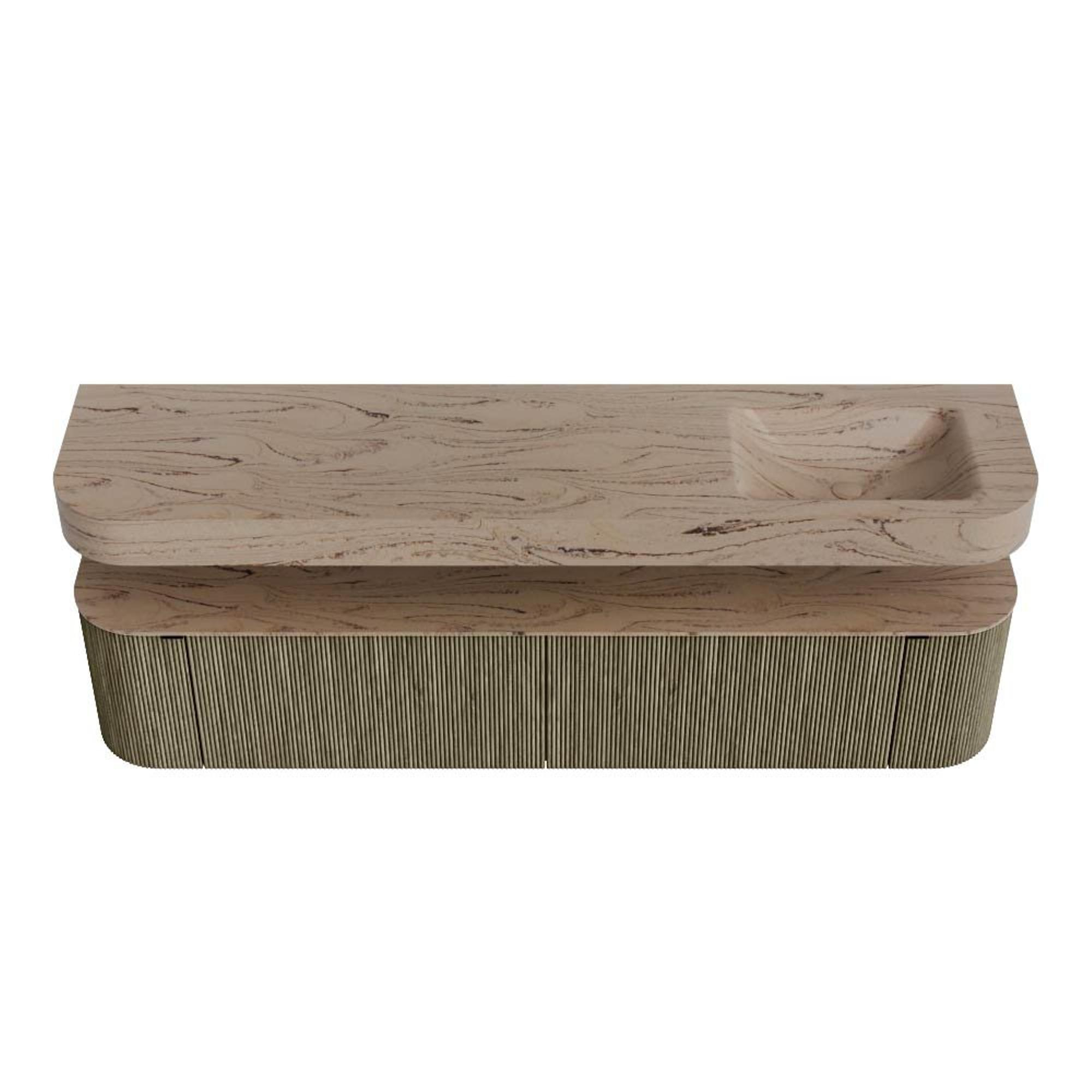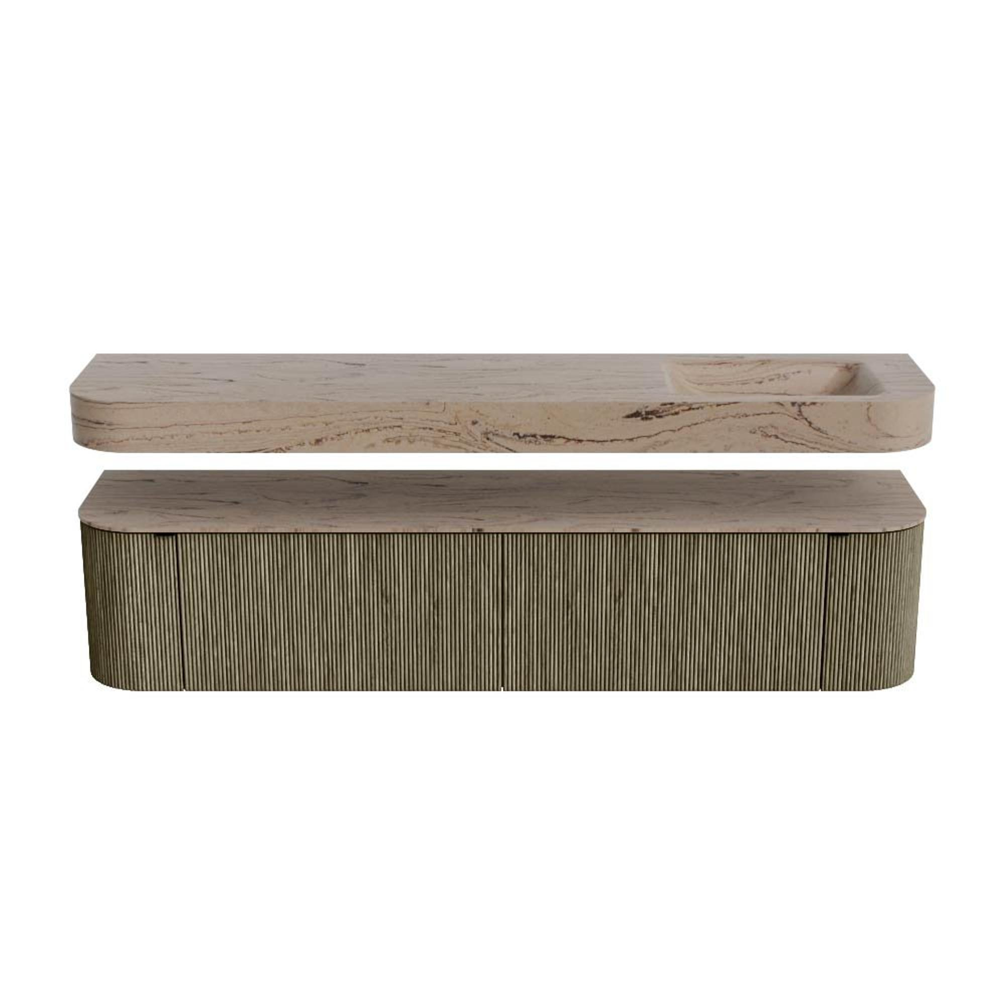 MONDIAZ THOR-DLUX 200cm badmeubel ronding links + rechts kleur Shadow met 2 lades en 2 deuren. Vrijhangende wastafel CLOUD Rechts zonder kraangat kleur Arena.
