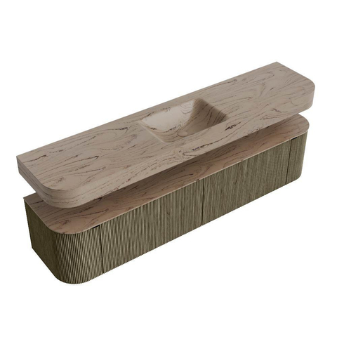 Natuurlijke materialen in warme tinten. De verticale ribbels brengen ritme en textuur in het ontwerp, terwijl het eikenhout zorgt voor een warme, ambachtelijke uitstraling. Kies uit 5 houttinten OAK, WALNUT, DUSK, SHADOW en RUBY zorgvuldig geselecteerde houtkleuren om zowel moderne als klassieke badkamers te verrijken.