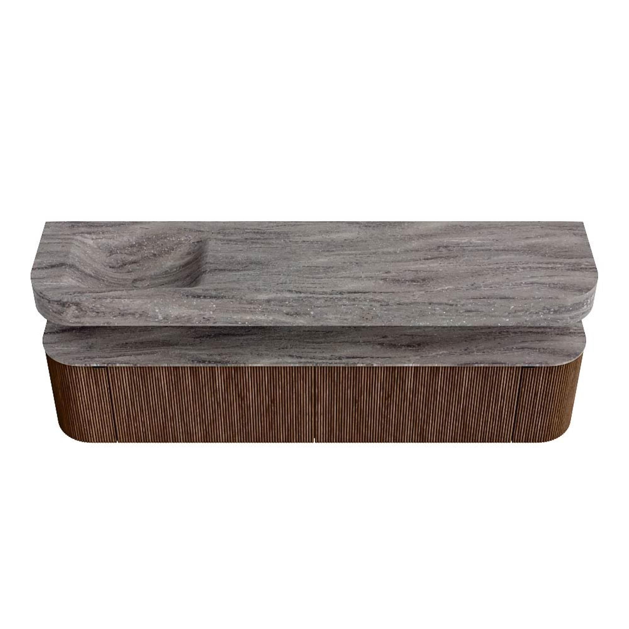 MONDIAZ THOR-DLUX 200cm badmeubel ronding links + rechts kleur Walnut met 2 lades en 2 deuren. Vrijhangende wastafel CLOUD Links 1 kraangat kleur Oza.