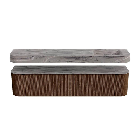MONDIAZ THOR-DLUX 200cm badmeubel ronding links + rechts kleur Walnut met 2 lades en 2 deuren. Vrijhangende wastafel CLOUD Rechts 1 kraangat kleur Sombra.