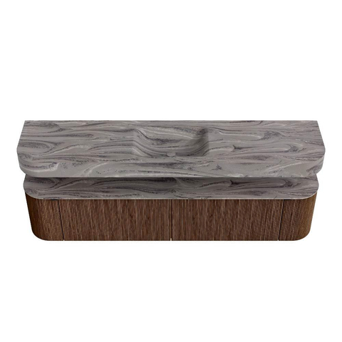 MONDIAZ THOR-DLUX 200cm badmeubel ronding links + rechts kleur Walnut met 2 lades en 2 deuren. Vrijhangende wastafel CLOUD Midden zonder kraangat kleur Sombra.
