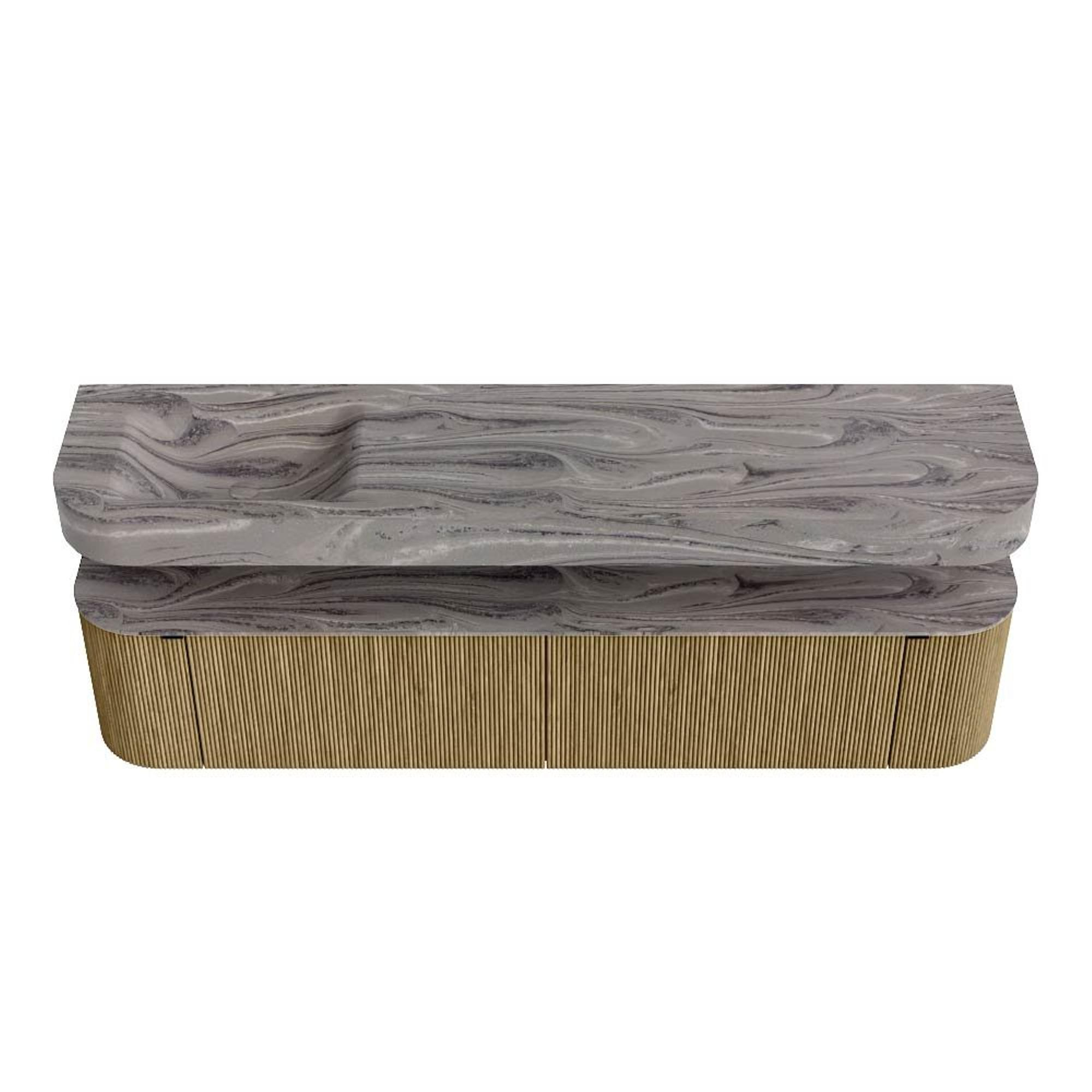 MONDIAZ THOR-DLUX 200cm badmeubel ronding links + rechts kleur Dusk met 2 lades en 2 deuren. Vrijhangende wastafel CLOUD Links 1 kraangat kleur Sombra.
