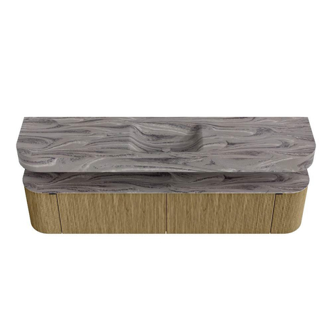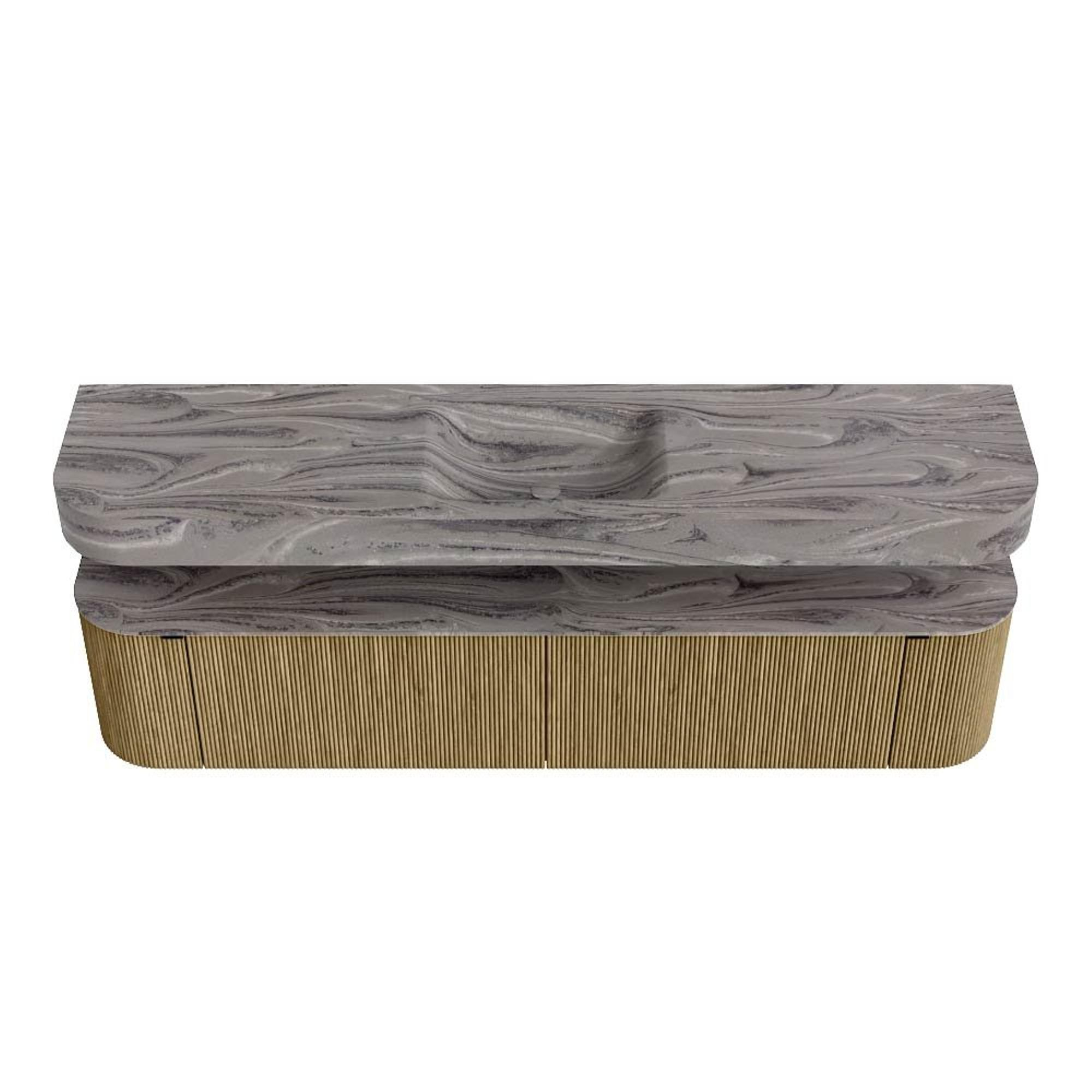 MONDIAZ THOR-DLUX 200cm badmeubel ronding links + rechts kleur Dusk met 2 lades en 2 deuren. Vrijhangende wastafel CLOUD Midden zonder kraangat kleur Sombra.