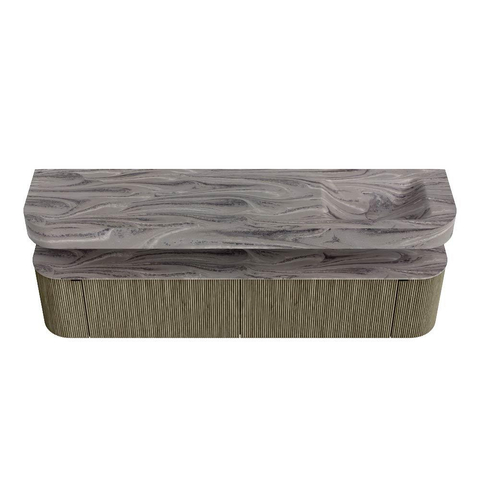 MONDIAZ THOR-DLUX 200cm badmeubel ronding links + rechts kleur Shadow met 2 lades en 2 deuren. Vrijhangende wastafel CLOUD Rechts zonder kraangat kleur Sombra.