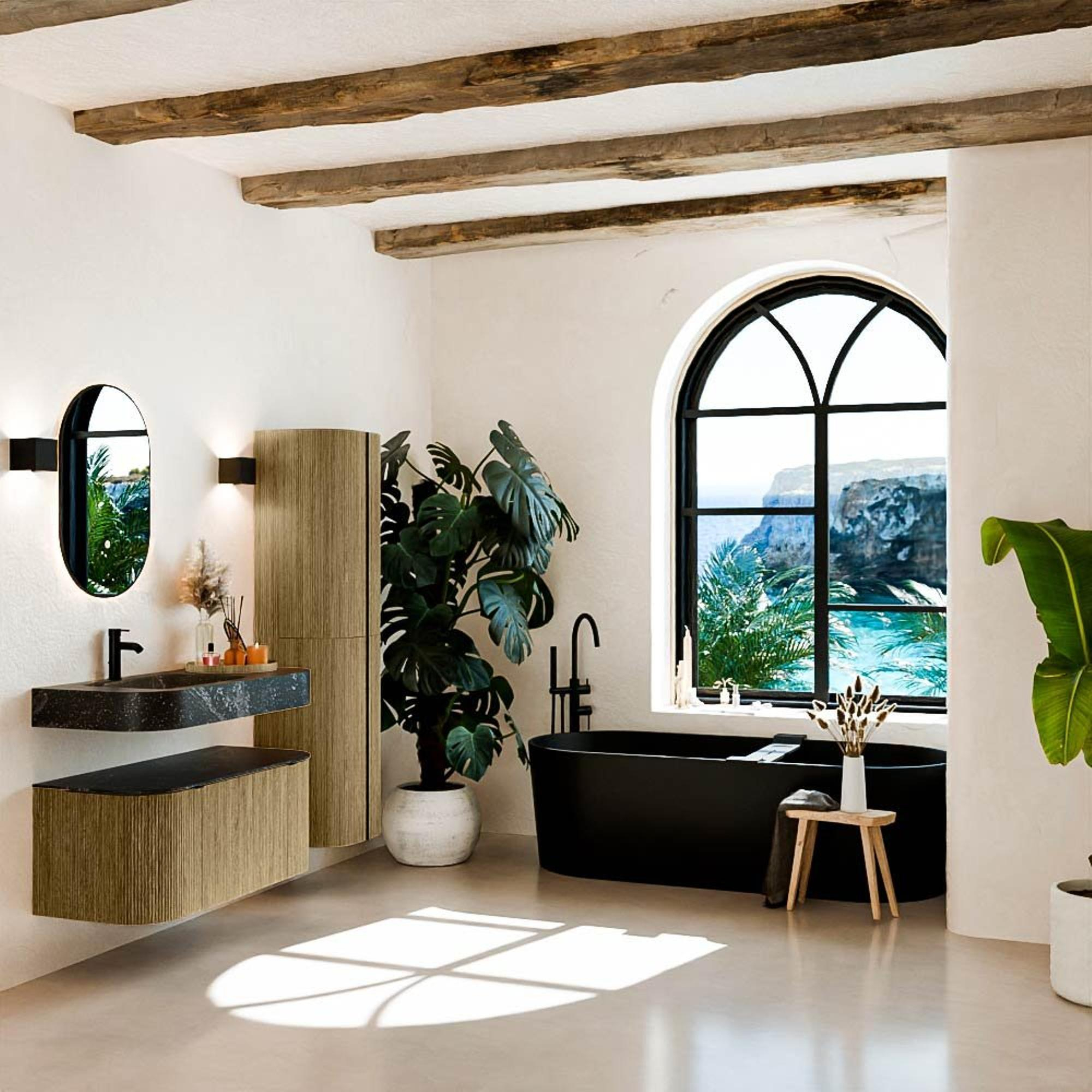 Natuurlijke materialen in warme tinten. De verticale ribbels brengen ritme en textuur in het ontwerp, terwijl het eikenhout zorgt voor een warme, ambachtelijke uitstraling. Kies uit 5 houttinten OAK, WALNUT, DUSK, SHADOW en RUBY zorgvuldig geselecteerde houtkleuren om zowel moderne als klassieke badkamers te verrijken.