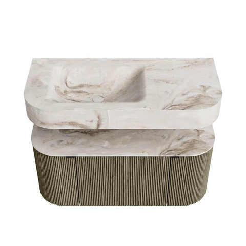 MONDIAZ THOR-DLUX 100cm badmeubel ronding links + rechts kleur Shadow met 1 lade en 2 deuren. Vrijhangende wastafel CLOUD Links 1 kraangat kleur Frappe.