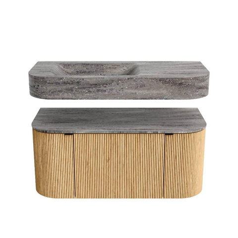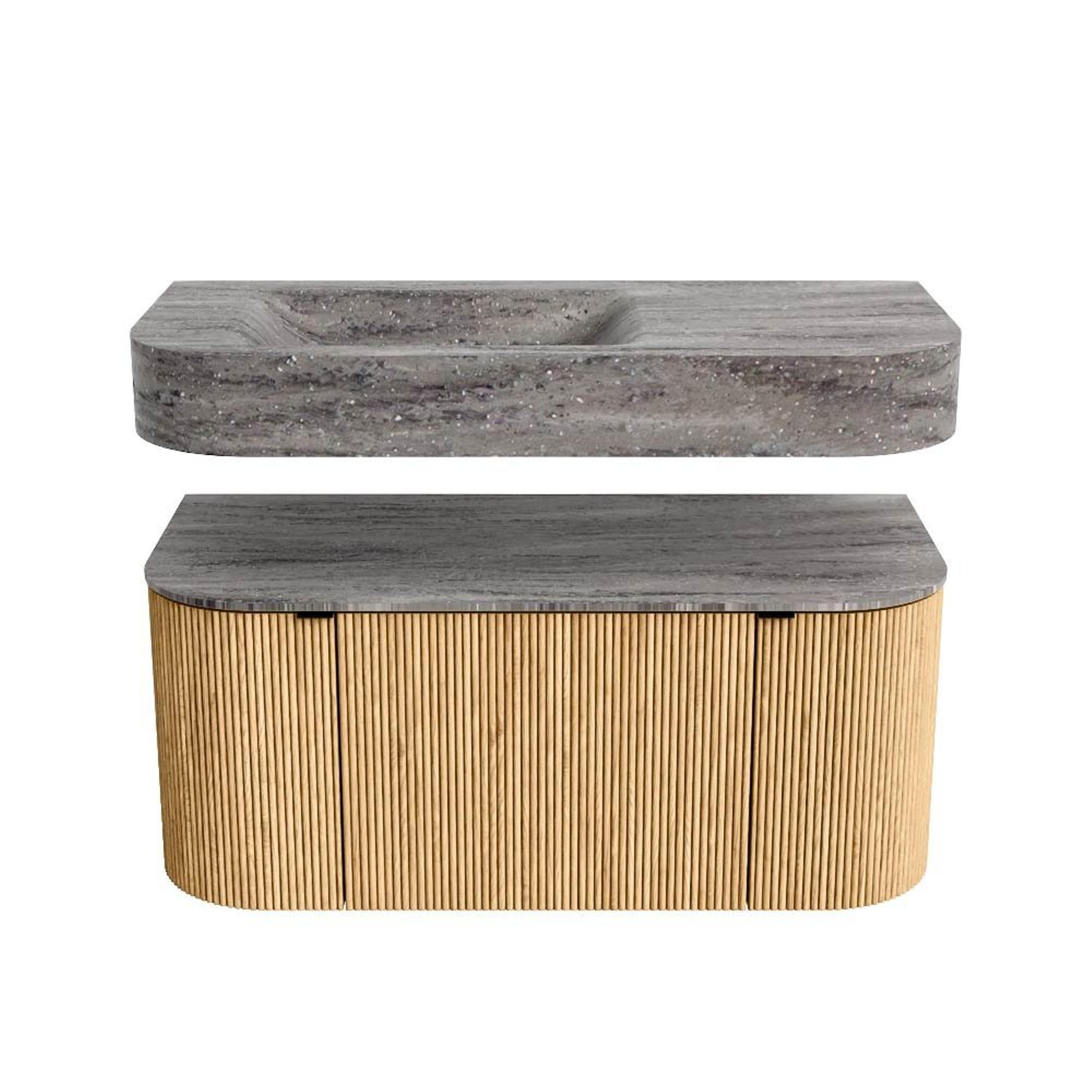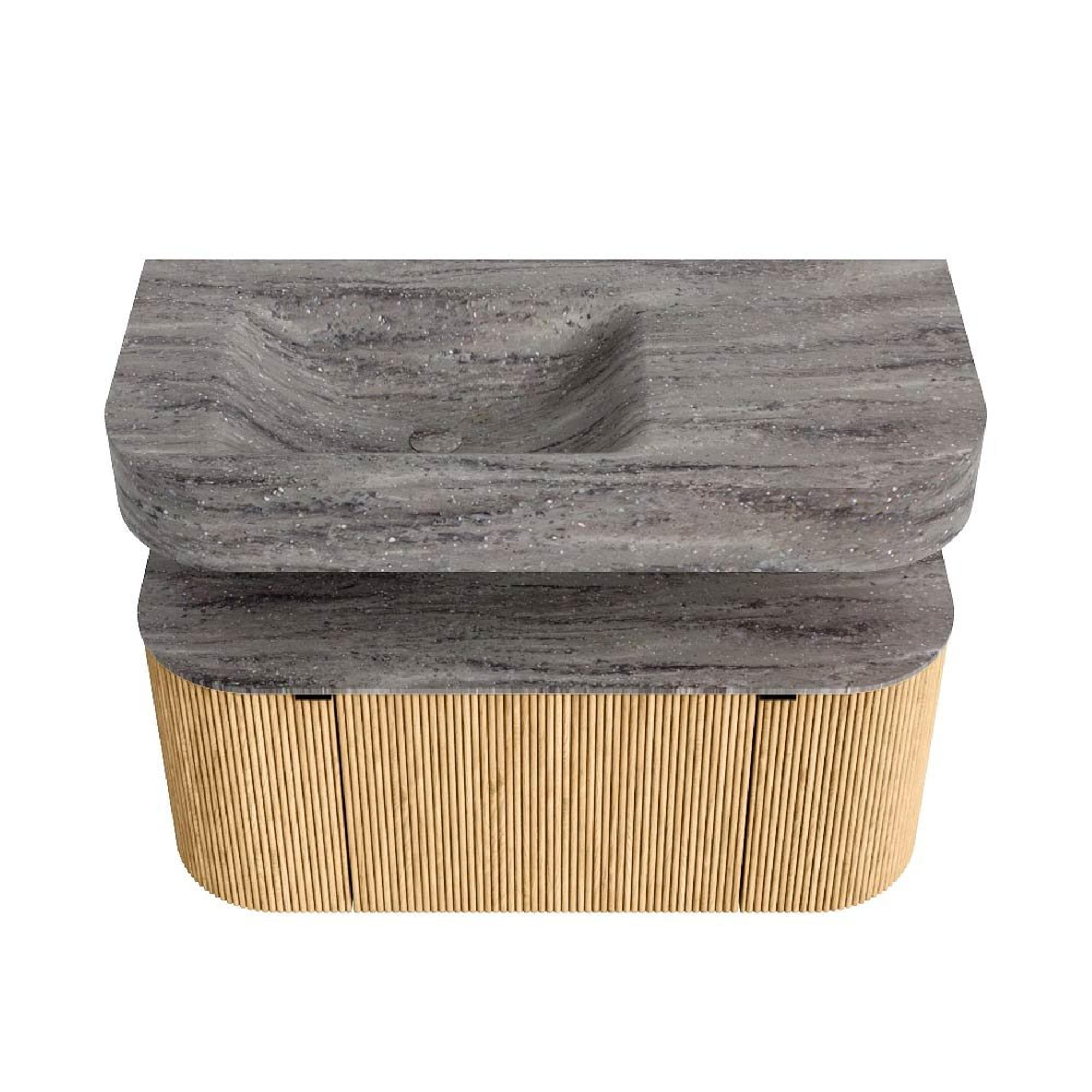 MONDIAZ THOR-DLUX 100cm badmeubel ronding links + rechts kleur Oak met 1 lade en 2 deuren. Vrijhangende wastafel CLOUD Links 1 kraangat kleur Oza.