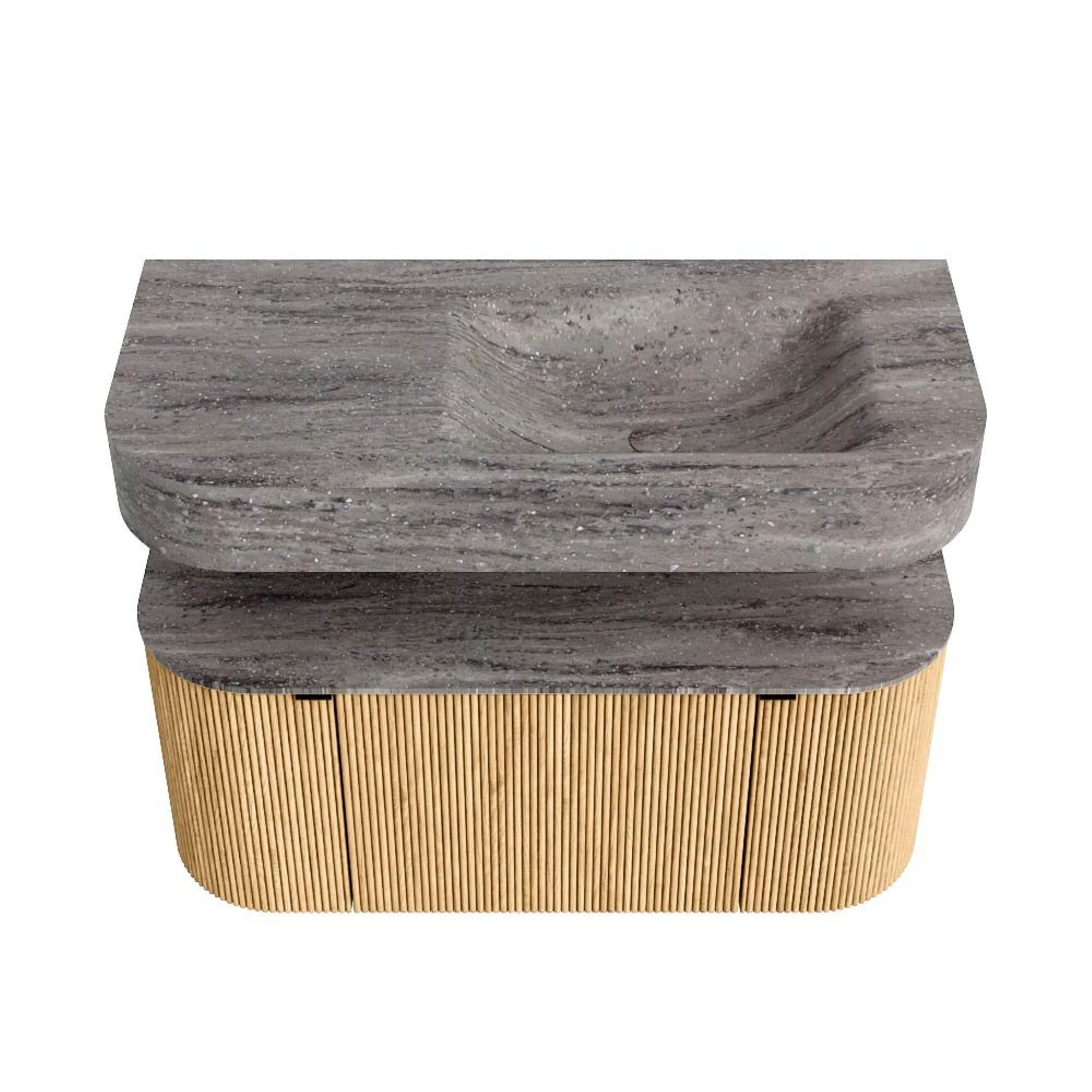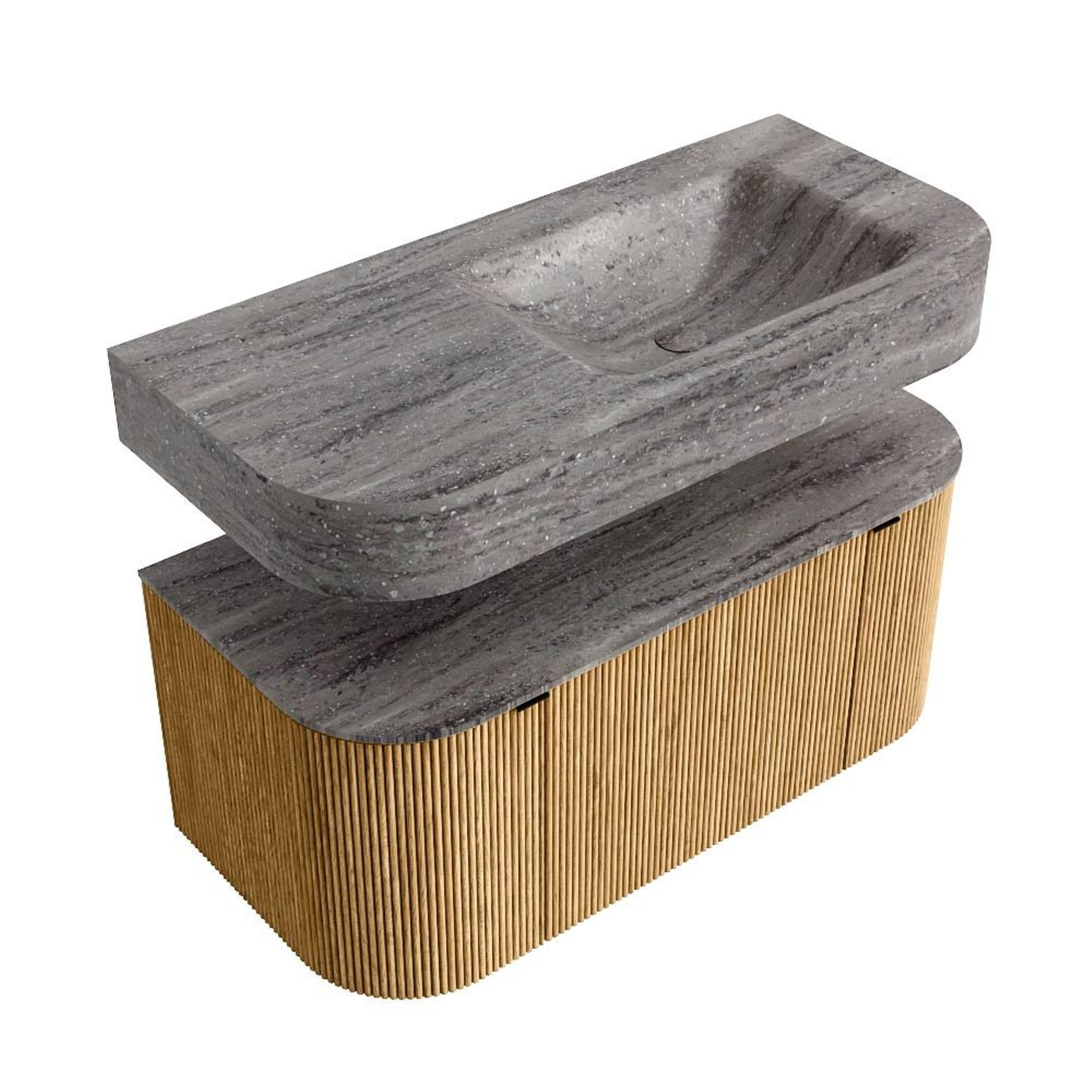 MONDIAZ THOR-DLUX 100cm badmeubel ronding links + rechts kleur Oak met 1 lade en 2 deuren. Vrijhangende wastafel CLOUD Rechts 1 kraangat kleur Oza.