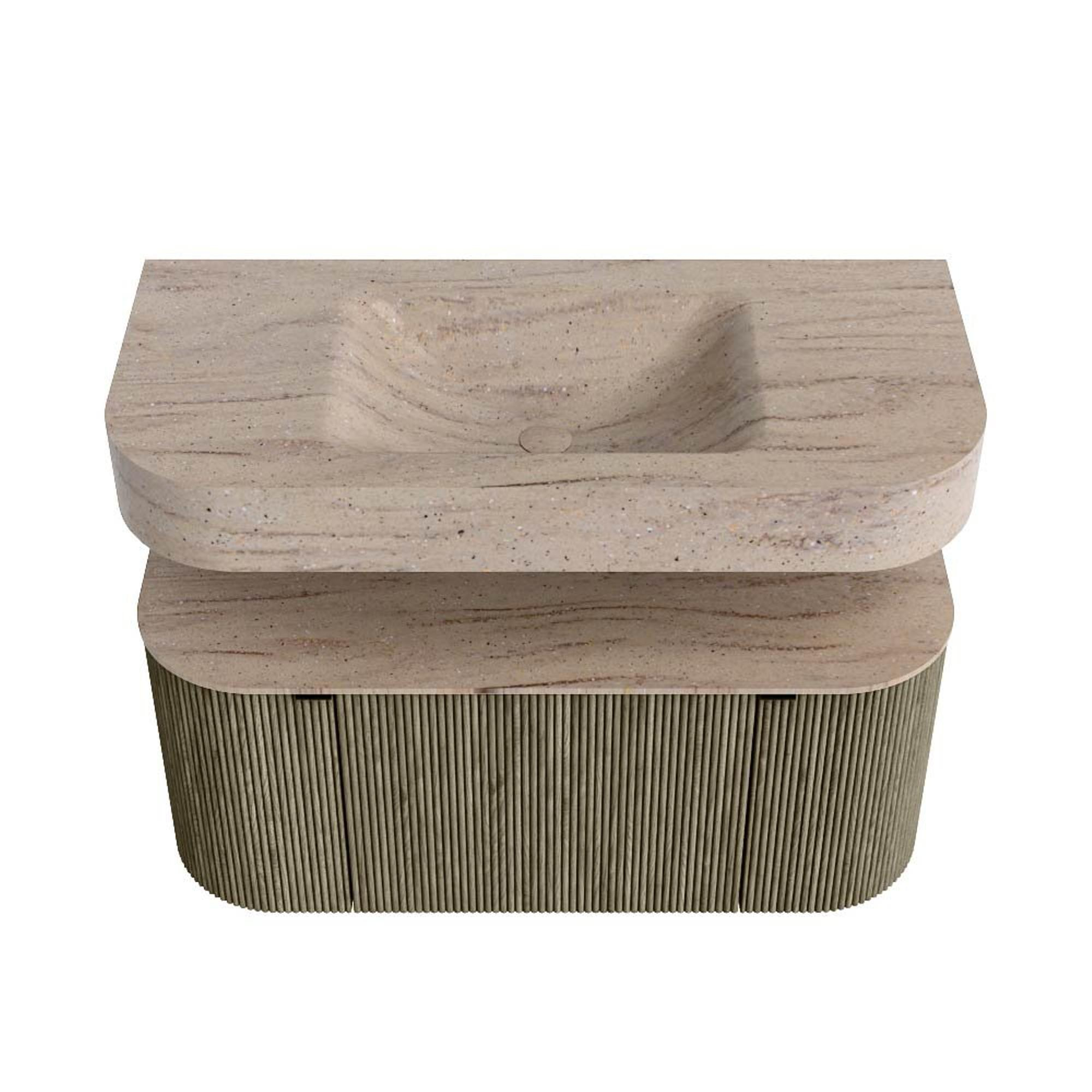 MONDIAZ THOR-DLUX 100cm badmeubel ronding links + rechts kleur Shadow met 1 lade en 2 deuren. Vrijhangende wastafel CLOUD Midden 1 kraangat kleur Saba.
