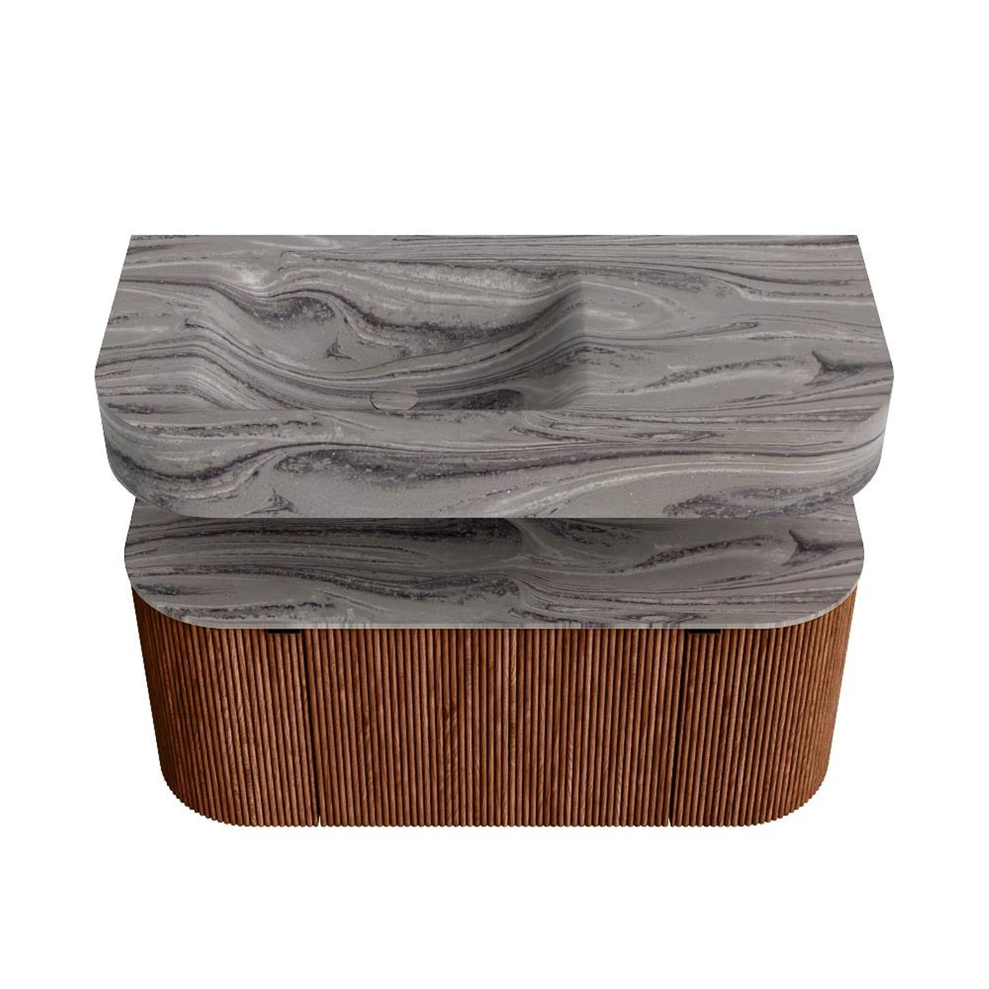 MONDIAZ THOR-DLUX 100cm badmeubel ronding links + rechts kleur Ruby met 1 lade en 2 deuren. Vrijhangende wastafel CLOUD Links zonder kraangat kleur Sombra.