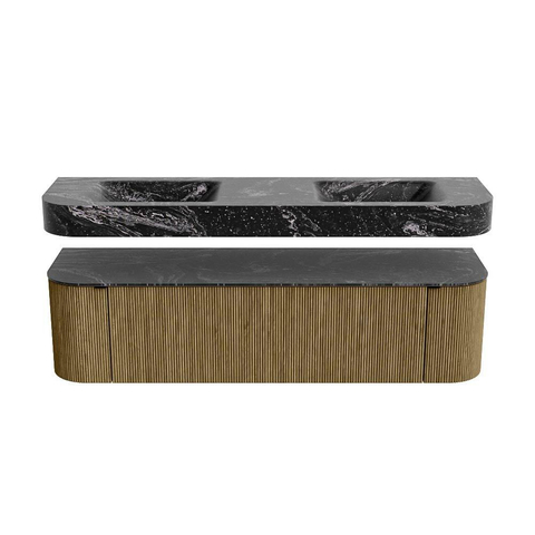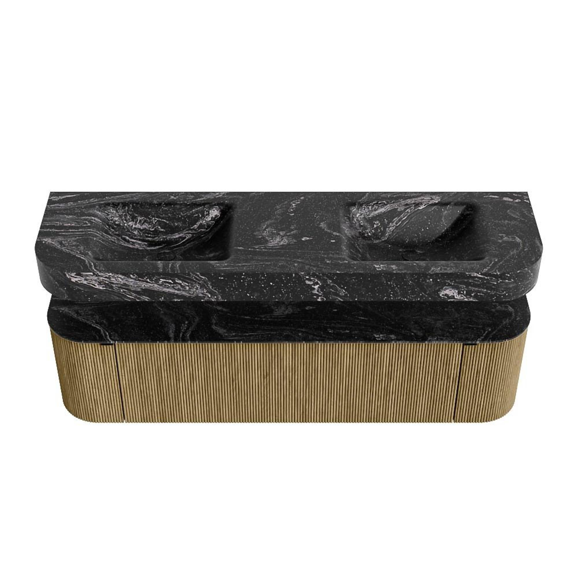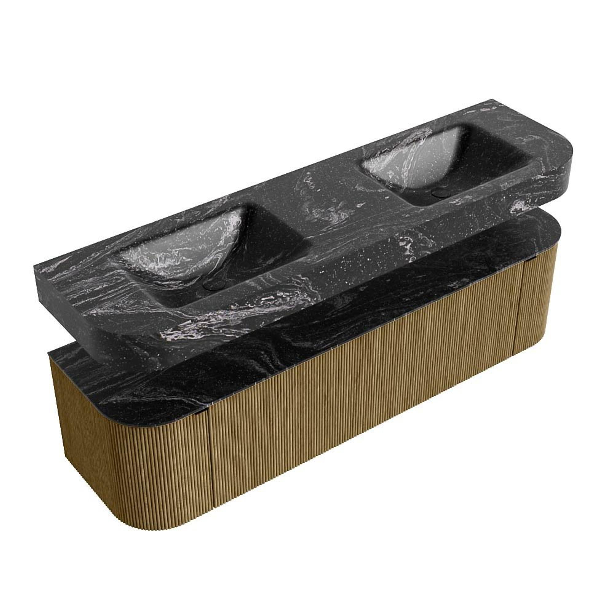 MONDIAZ THOR-DLUX 170cm badmeubel ronding links + rechts kleur Dusk met 1 lade en 2 deuren. Vrijhangende wastafel CLOUD Dubbel zonder kraangat kleur Lava.