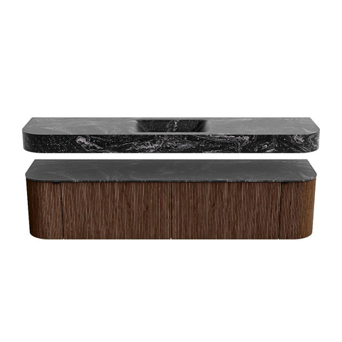 MONDIAZ THOR-DLUX 190cm badmeubel ronding links + rechts kleur Walnut met 2 lades en 2 deuren. Vrijhangende wastafel CLOUD Midden 1 kraangat kleur Lava.