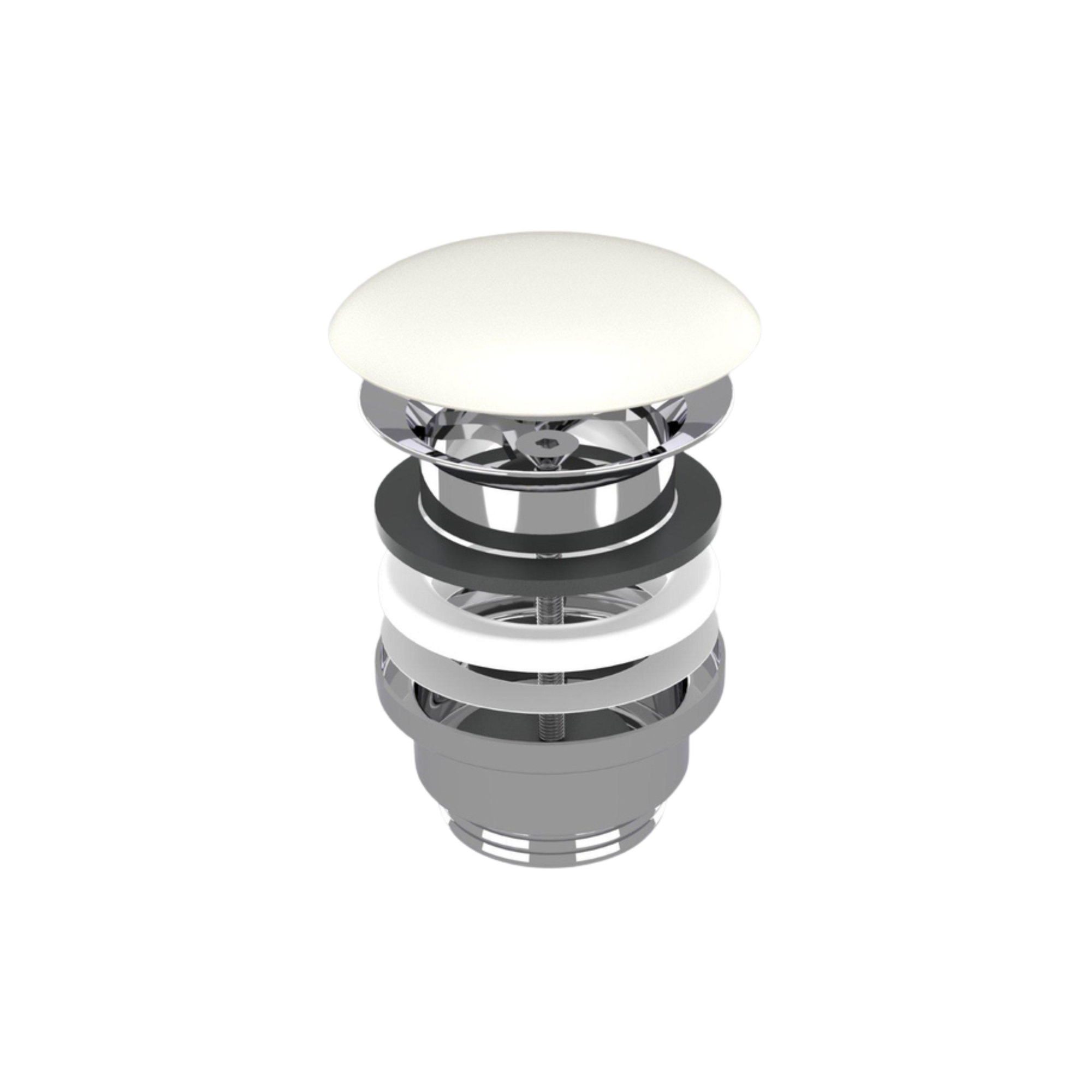 Zoek je een nette, strakke afwerking voor je wastafel of fontein, zonder dat de techniek alle aandacht opeist? Dan is een stijlvolle klikafvoer een slimme keuze. Met een ronde, keramische bovenkant in mat wit oogt de afvoer rustig en minimalistisch, terwijl hij toch een belangrijk detail is dat de hele opstelling afmaakt. Dit type accessoire is ideaal als je een moderne of tijdloze badkamer hebt, waarin zachte lijnen en natuurlijke materialen de toon zetten. Ook in een compact toiletfonteintje komt zo’n subtiel vormgegeven wastafelplug uitstekend tot zijn recht. Dankzij het praktische clicksysteem bedien je de afvoer eenvoudig met een lichte druk van je vinger, zodat dagelijks gebruik moeiteloos gaat en je geen losse stop meer nodig hebt. Wil je een harmonieus geheel creëren met een mat witte kraan, wastafel of meubel, dan sluit deze oplossing daar naadloos op aan.