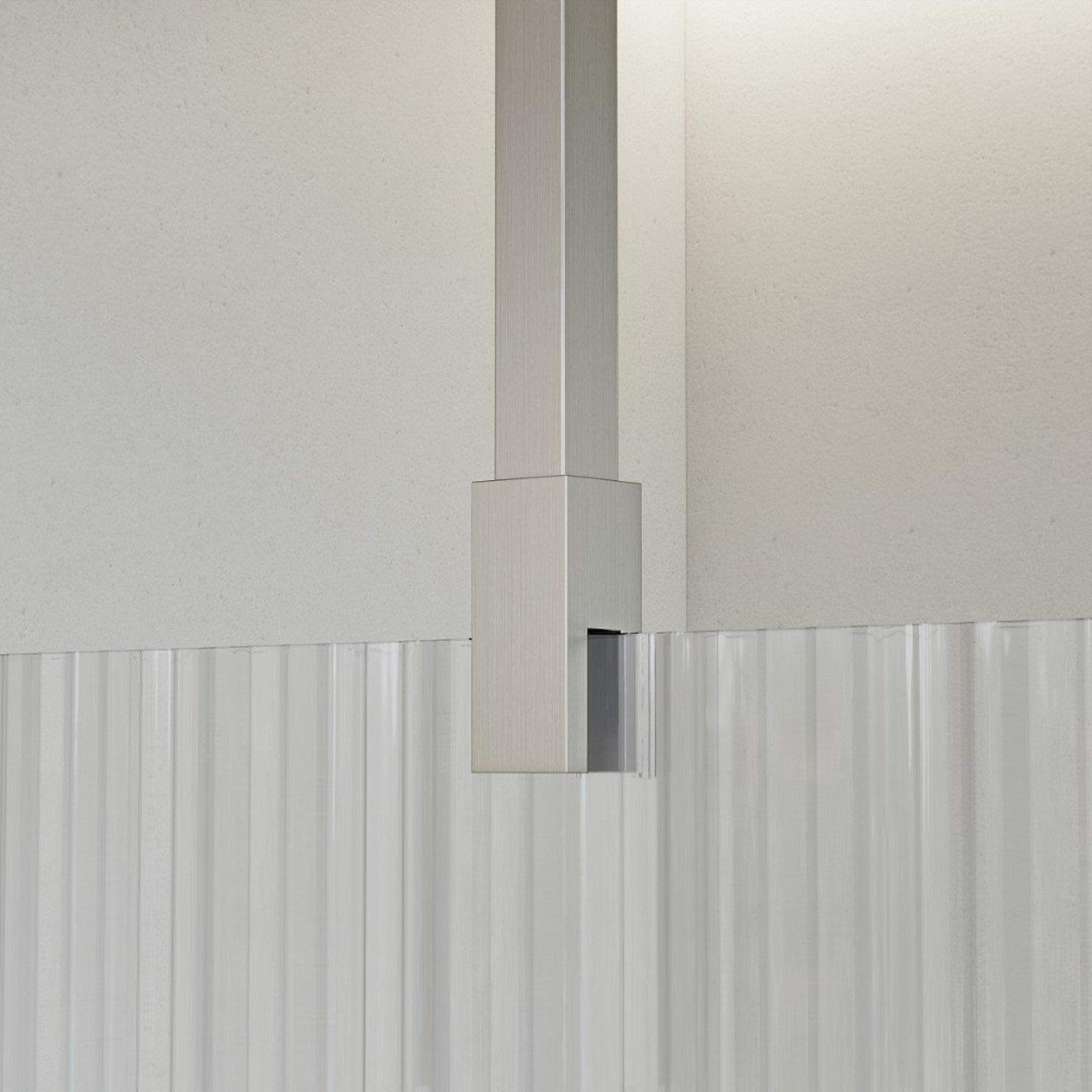 De FugaFlow Eccelente Vetro inloopdouche van 180x200cm combineert elegantie met functionaliteit dankzij het ribbelglas en het plafondarm ontwerp. De geborsteld RVS PVD afwerking geeft je badkamer een moderne en luxe uitstraling. Geniet van een ruime en stijlvolle douche-ervaring in jouw eigen badkamer.