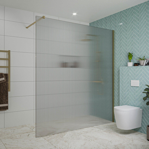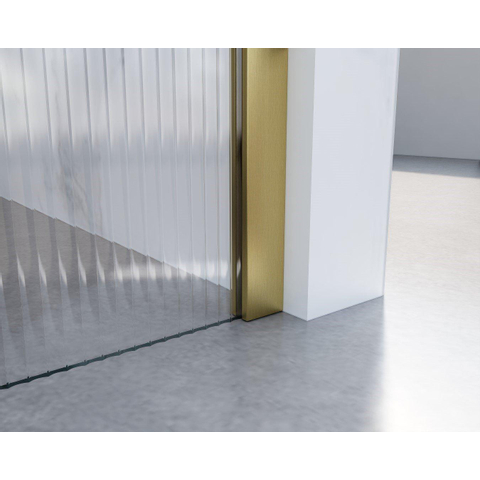 De FugaFlow Eccelente Vetro inloopdouche van 180x200 cm is een stijlvolle en moderne toevoeging aan jouw badkamer. Het ribbelglas zorgt voor privacy zonder het open gevoel te verliezen, terwijl de wandarm en de geborsteld messing PVD (goud) afwerking een luxe uitstraling geven. Geniet van een comfortabele en elegante douche-ervaring met dit hoogwaardige ontwerp.