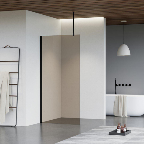 FugaFlow Eccelente Vetro inloopdouche - 180x200cm - rookglas - plafondarm - mat zwart