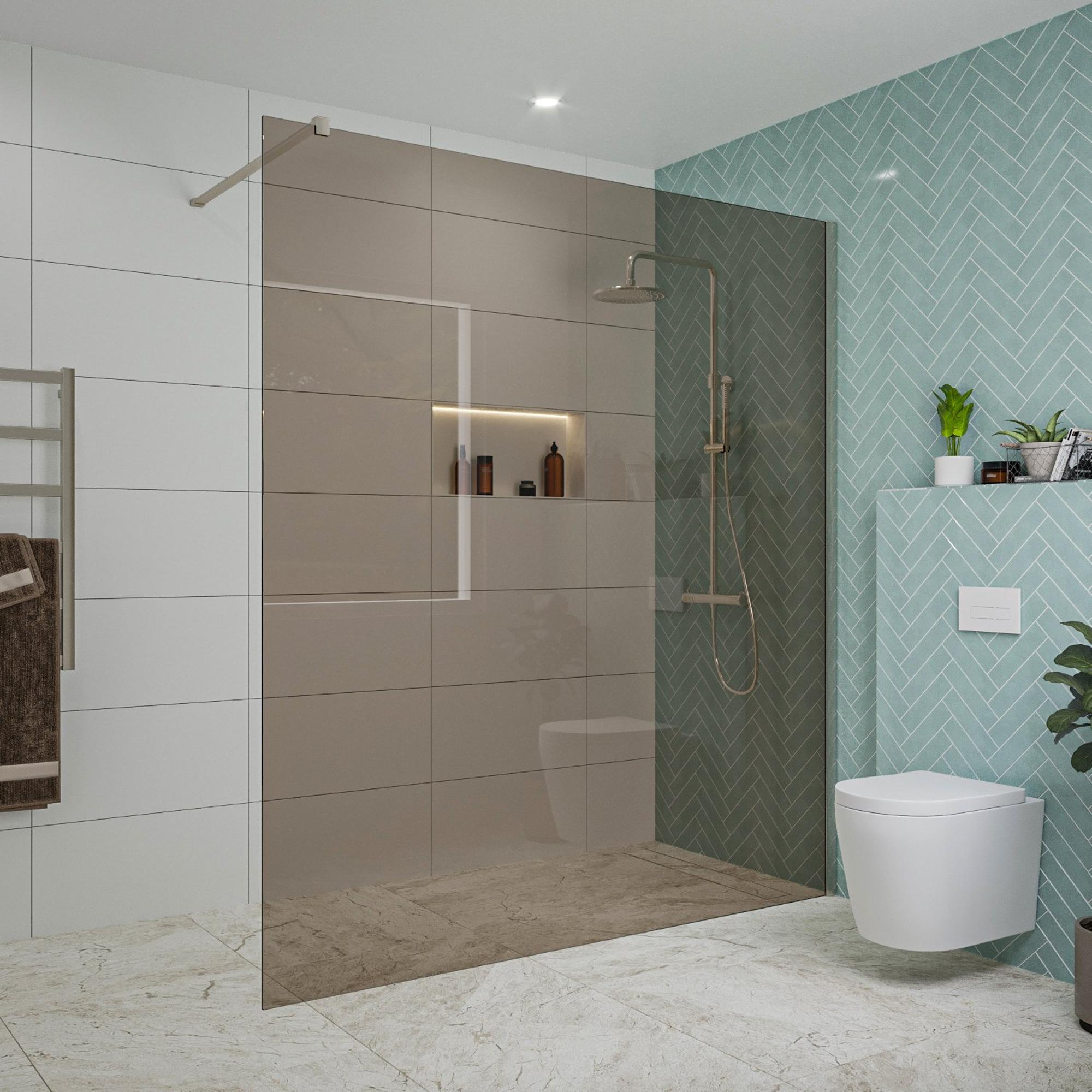 De FugaFlow Eccelente Vetro inloopdouche van 180x200cm met rookglas en een wandarm in geborsteld RVS PVD is een stijlvolle en moderne toevoeging aan jouw badkamer. Het rookglas zorgt voor privacy en een luxe uitstraling, terwijl het geborsteld RVS een verfijnde touch geeft. Deze inloopdouche combineert elegantie met functionaliteit voor een comfortabele douche-ervaring.
