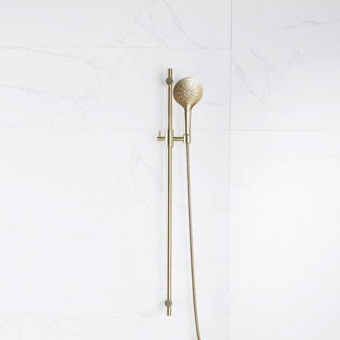 De FugaFlow Eccelente Acces glijstangset met ronde handdouche en metalen doucheslang in geborsteld messing PVD (goud) combineert stijlvol design met functionaliteit. Dankzij de glijstang kun je de handdouche eenvoudig op elke gewenste hoogte plaatsen, wat het ideaal maakt voor gebruik door meerdere personen.