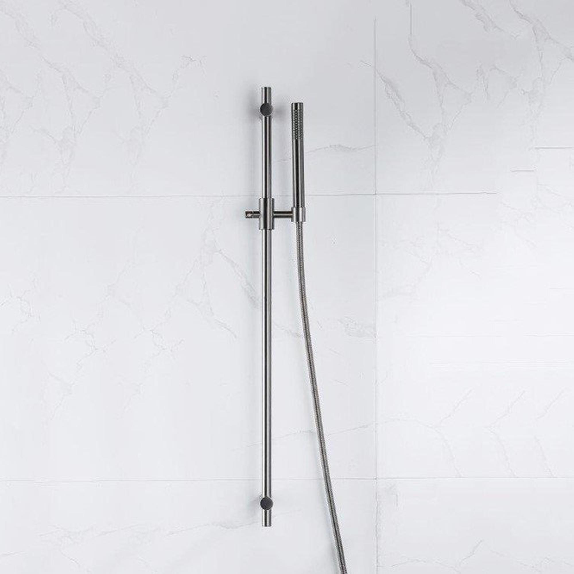 De FugaFlow Eccelente Acces glijstangset met staafhanddouche en metalen doucheslang in geborsteld Gunmetal PVD (antraciet) combineert stijlvol design met functionaliteit. Dankzij de glijstang kun je de handdouche eenvoudig op elke gewenste hoogte plaatsen, wat het douchen comfortabel maakt voor iedereen in huis.
