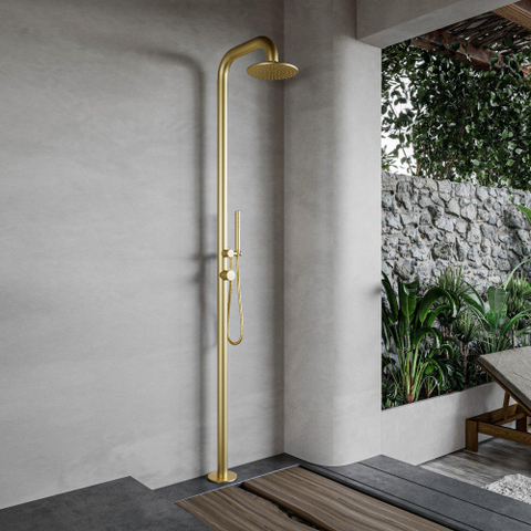 FugaFlow Eccelente Acces Deluxe Vrijstaande Buitendouche - RVS 316 - handdouche - regendouche - Geborsteld Messing PVD (Goud)