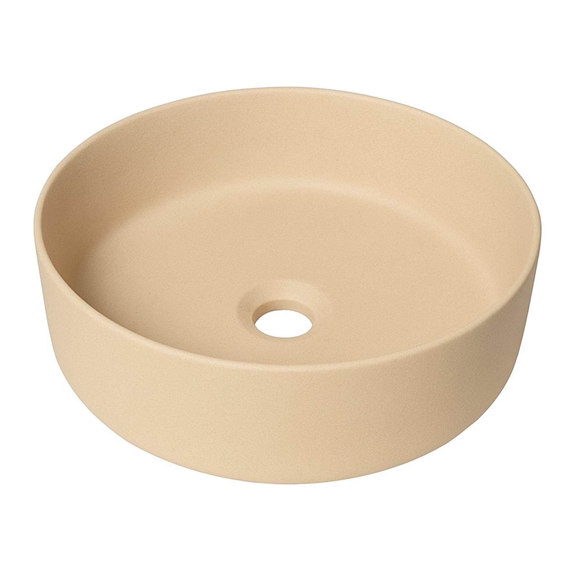 FugaFlow Eccelente Pietra waskom - 36x36x12cm - zonder overloop - rond - keramiek - mat beige