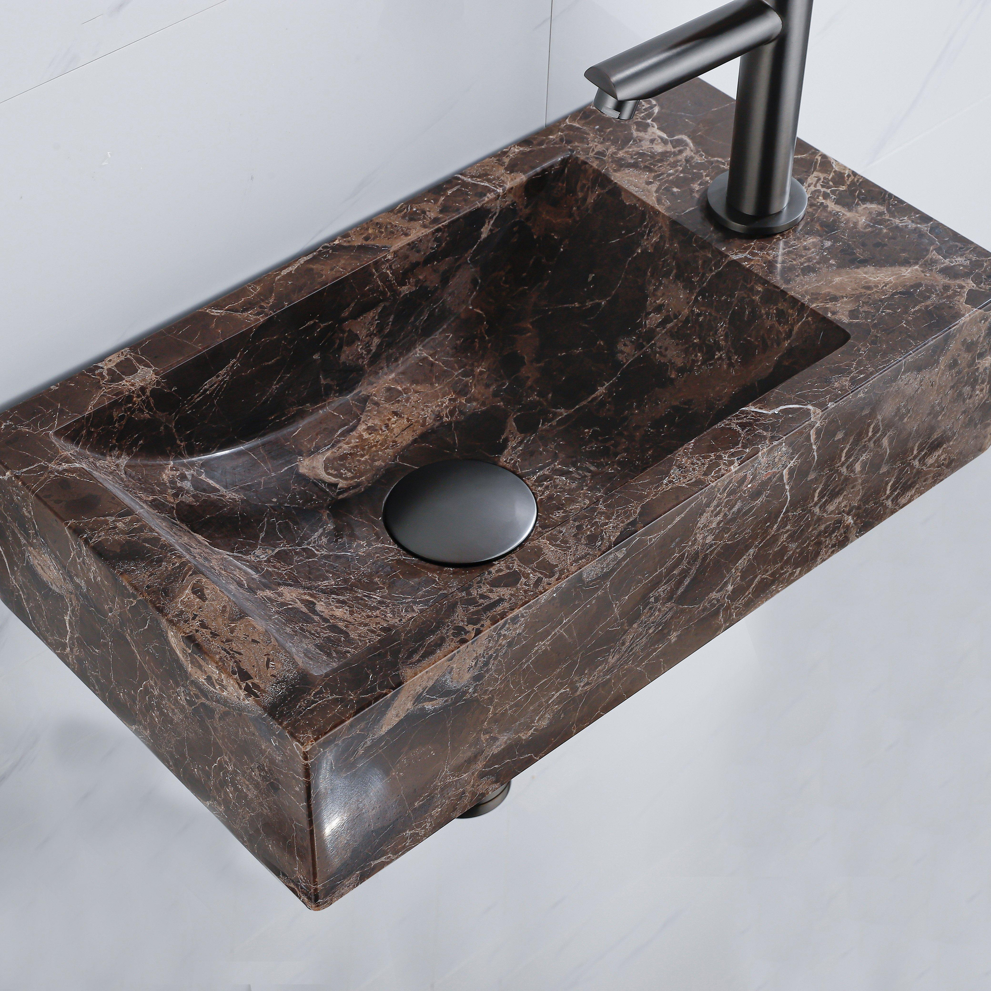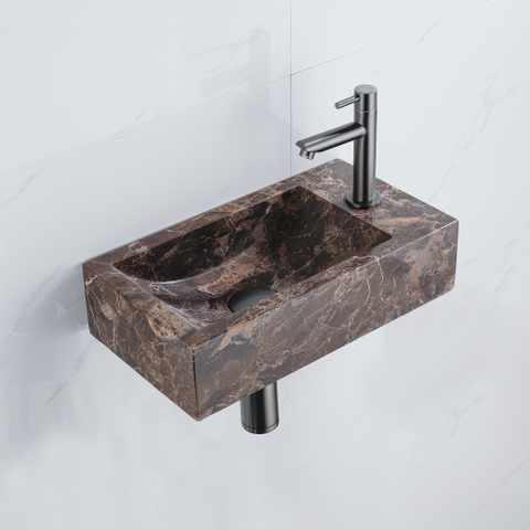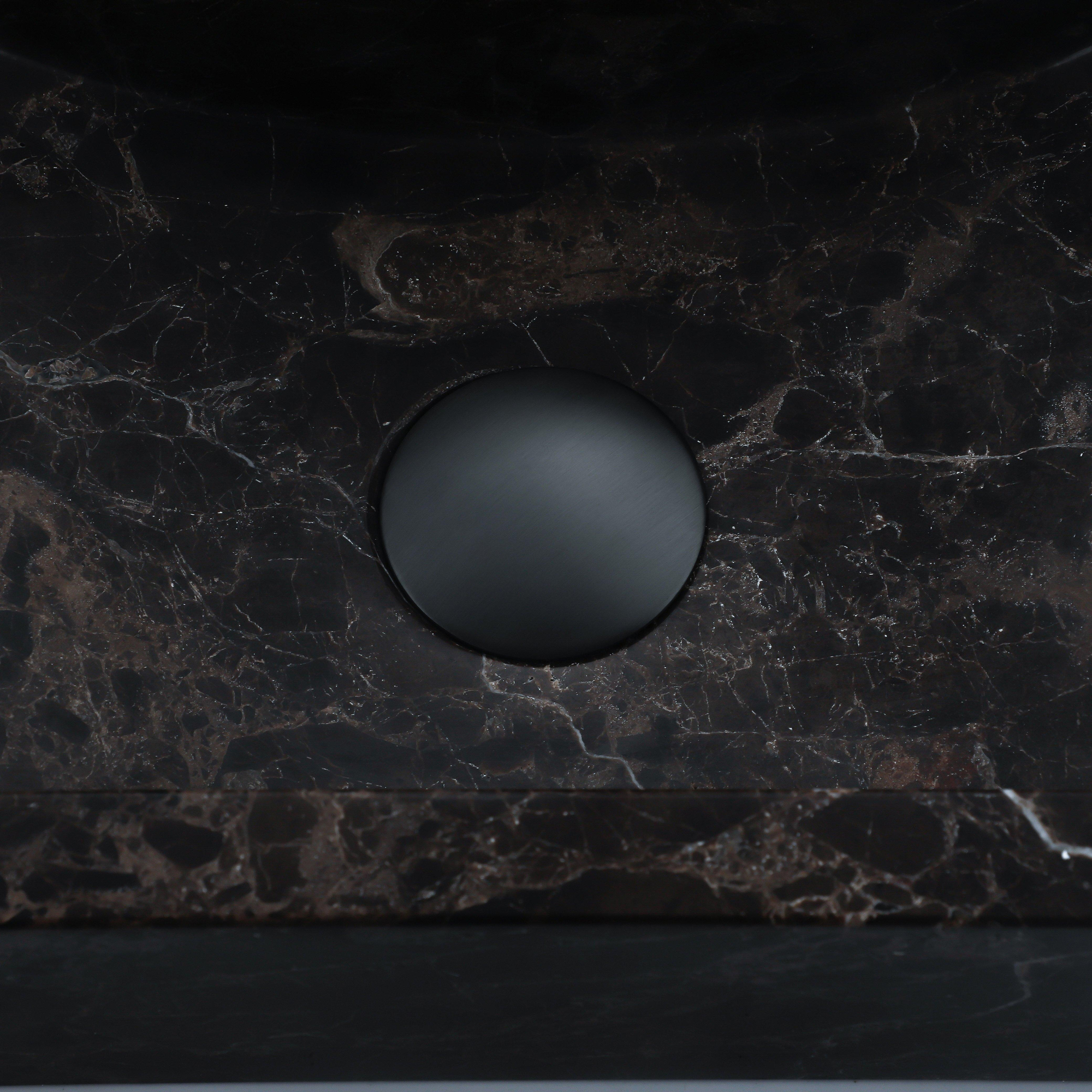 FugaFlow Eccelente Pietra Fonteinset - 40x22x10cm - kraangat rechts - fonteinkraan geborsteld gunmetal PVD - afvoerplug - verlaagd sifon - Dark Emporador