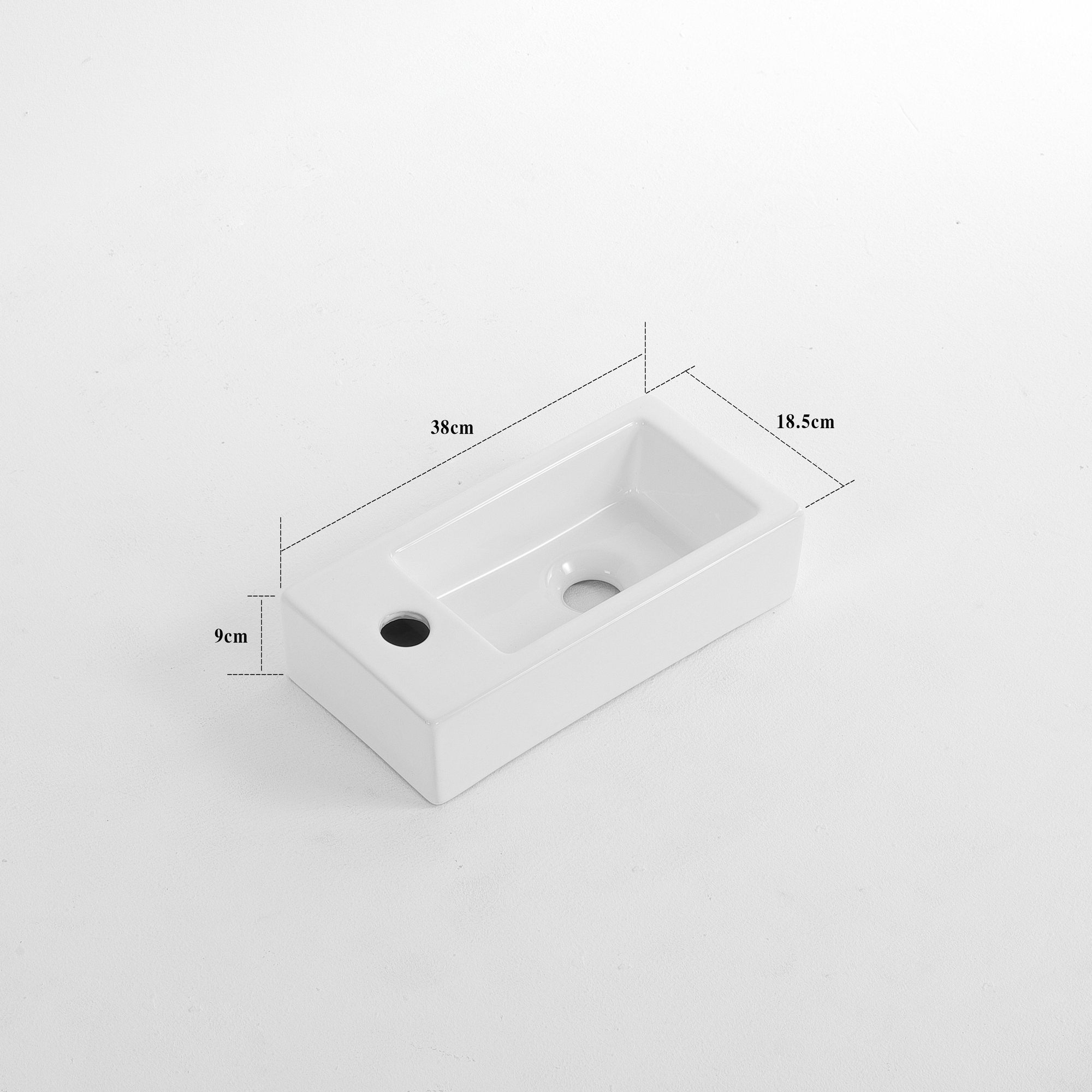 De FugaFlow Eccelente Pietra Fontein is een stijlvolle en praktische aanwinst voor jouw badkamer. Met een afmeting van 38x18.5x9 cm en een glanzend witte keramische afwerking, geeft deze fontein jouw ruimte een frisse en moderne uitstraling. Het kraangat aan de linkerkant zorgt voor een handige plaatsing van de kraan.
