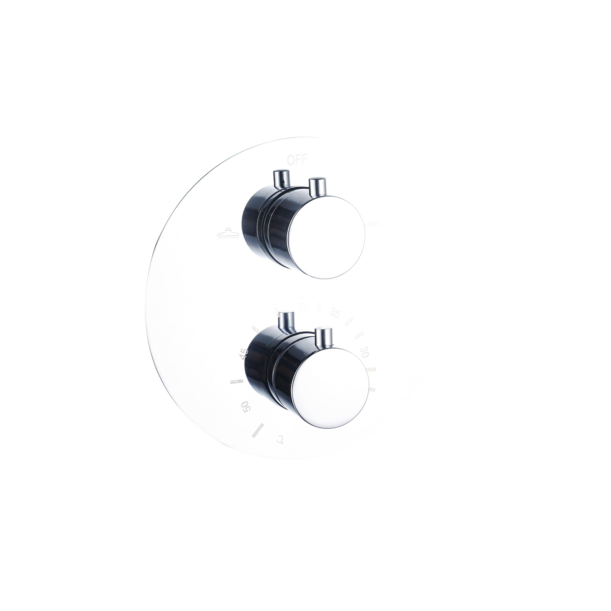 De FugaFlow Eccelente Acces Thermostatische Inbouwkraan - inbouwdeel - rond - chroom is een stijlvolle en moderne toevoeging aan je badkamer. Dankzij het strakke ontwerp en de luxe chroomafwerking krijgt je badkamer een elegante uitstraling. Met de ingebouwde thermostaat geniet je altijd van de perfecte watertemperatuur voor een comfortabele douche-ervaring.