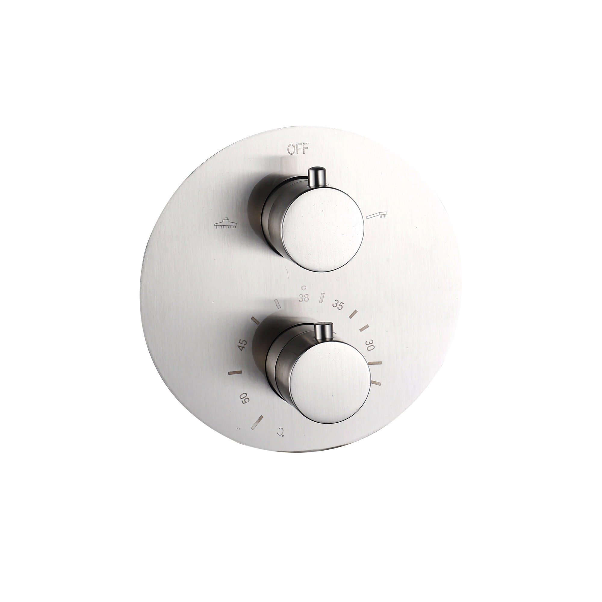 De FugaFlow Eccelente Acces Thermostatische Inbouwkraan is een stijlvolle en moderne toevoeging aan je badkamer. Dankzij het ronde ontwerp en de geborsteld roestvrijstalen afwerking krijgt je badkamer een tijdloze en luxe uitstraling. Met de ingebouwde thermostaat geniet je altijd van de perfecte watertemperatuur voor een comfortabele douche-ervaring.