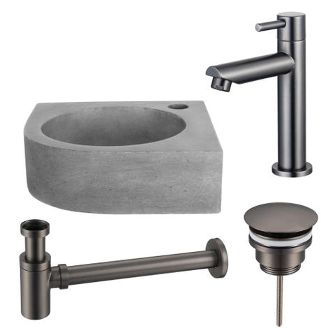 FugaFlow Eccelente Pietra fonteinset - 31.5x31.5x10cm - 1 kraangat - hoek - fonteinkraan gunmetal - beton
